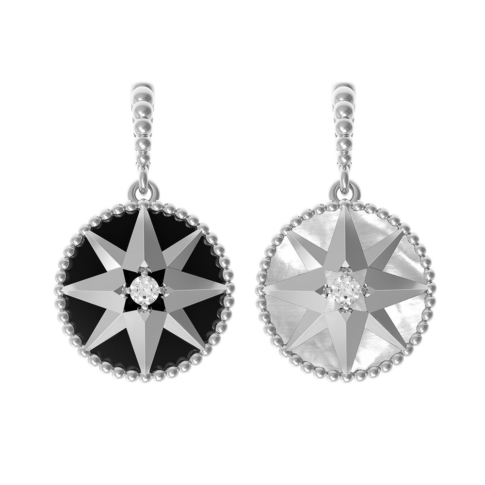 Подвеска из белого золота 585 пробы c фианитом, ониксом и перламутром