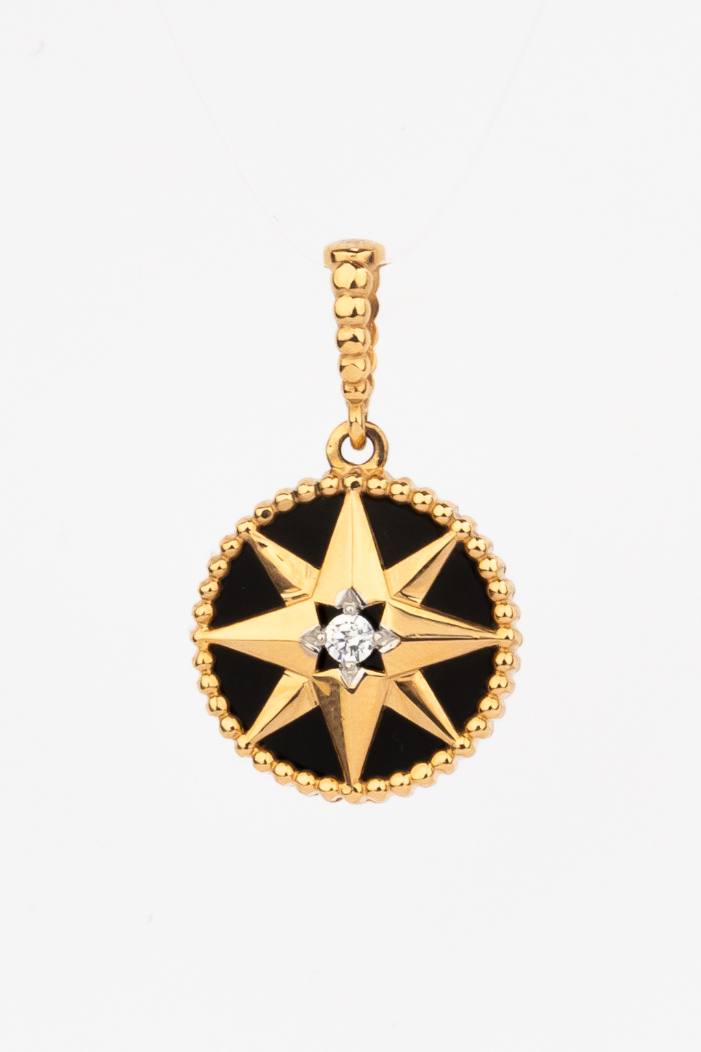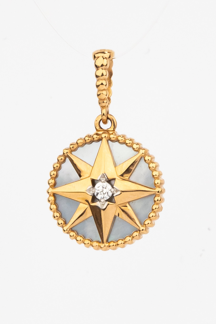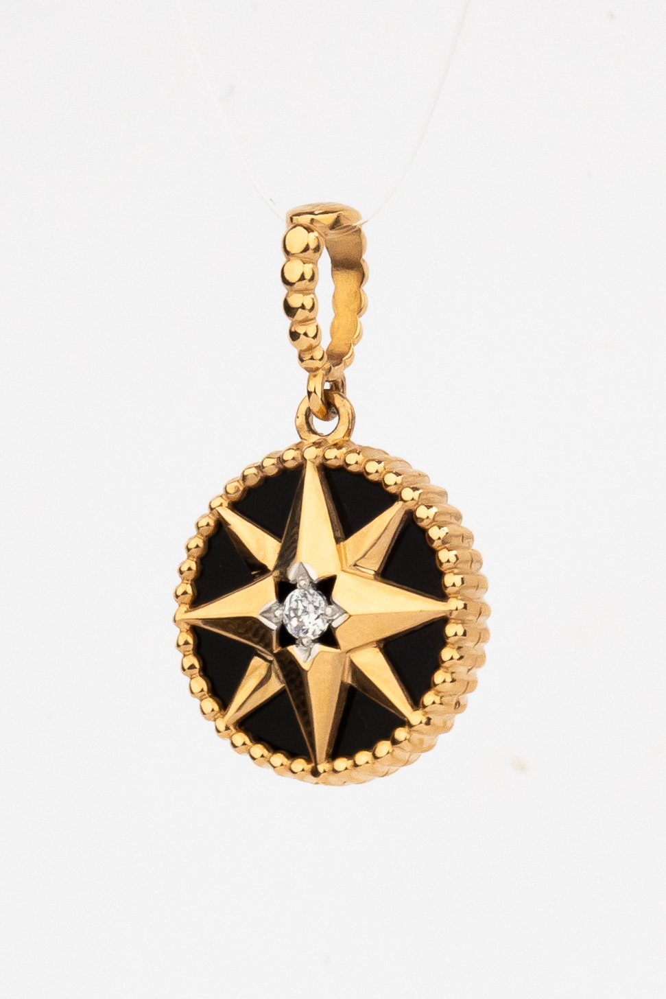 Подвеска из красного золота 585 пробы c фианитом, ониксом и перламутром