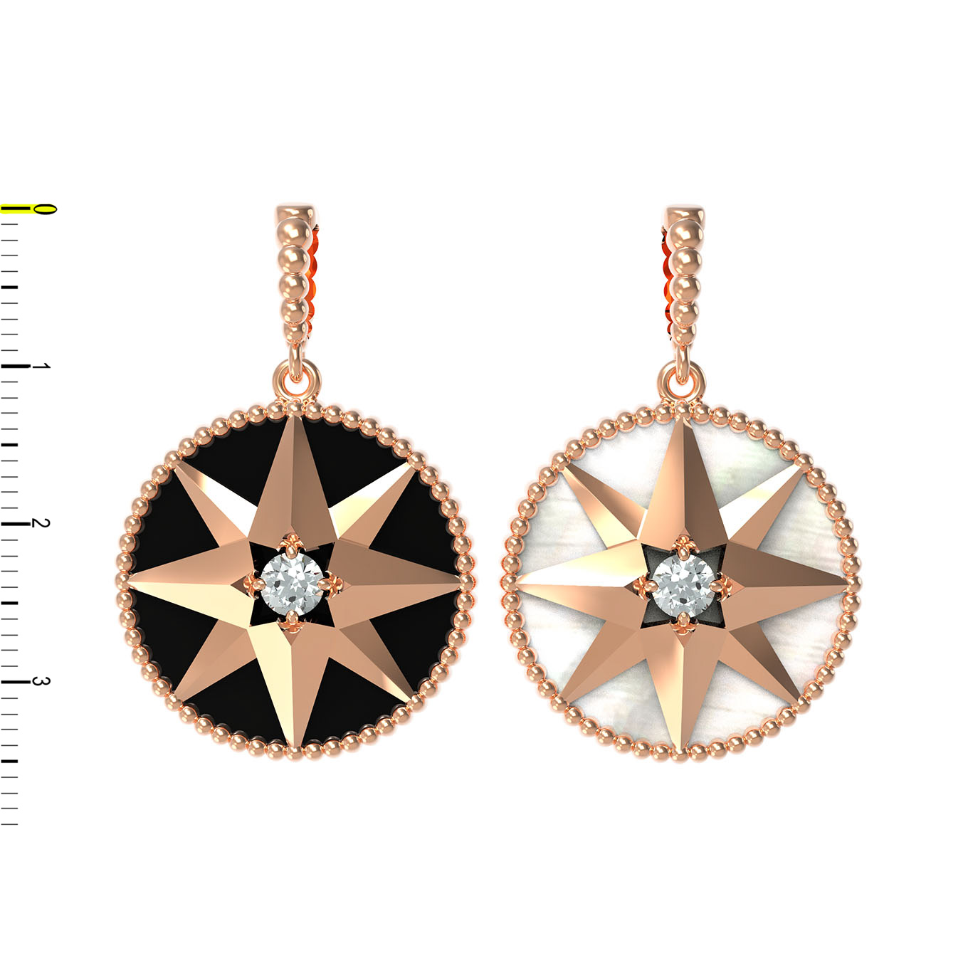 Подвеска из красного золота 585 пробы c фианитом, ониксом и перламутром
