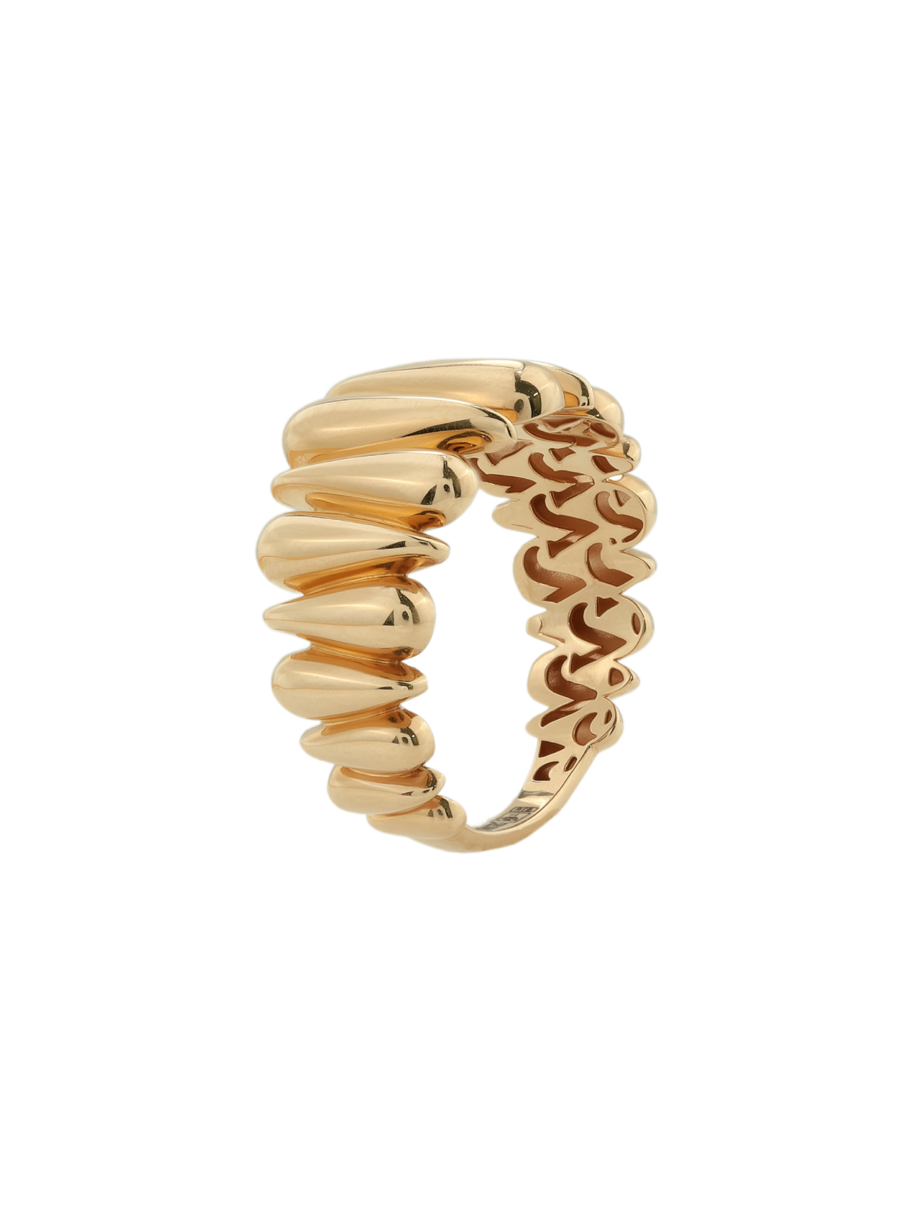 Эффектное кольцо из золота станет главным акцентом вашего образа, подчеркивая безупречный вкус и смелость стиля. Изделие выполнено в современном дизайне с акцентом на фактурные шипы, которые придают украшению дерзкий и одновременно элегантный вид. Глянцевая поверхность металла мягко отражает свет, создавая притягательный блеск.