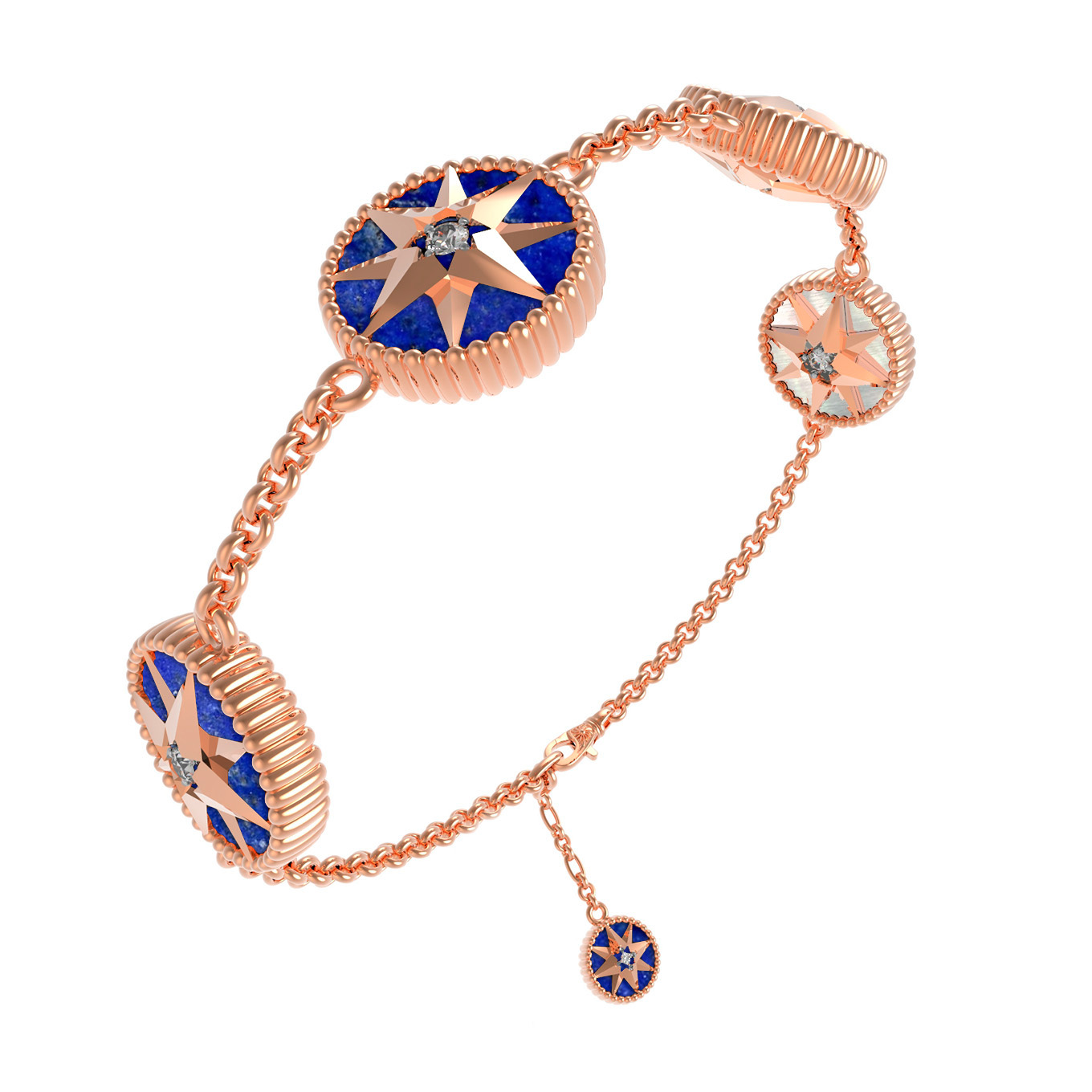 Браслет из красного золота 585 пробы c фианитом, лазуритом и перламутром