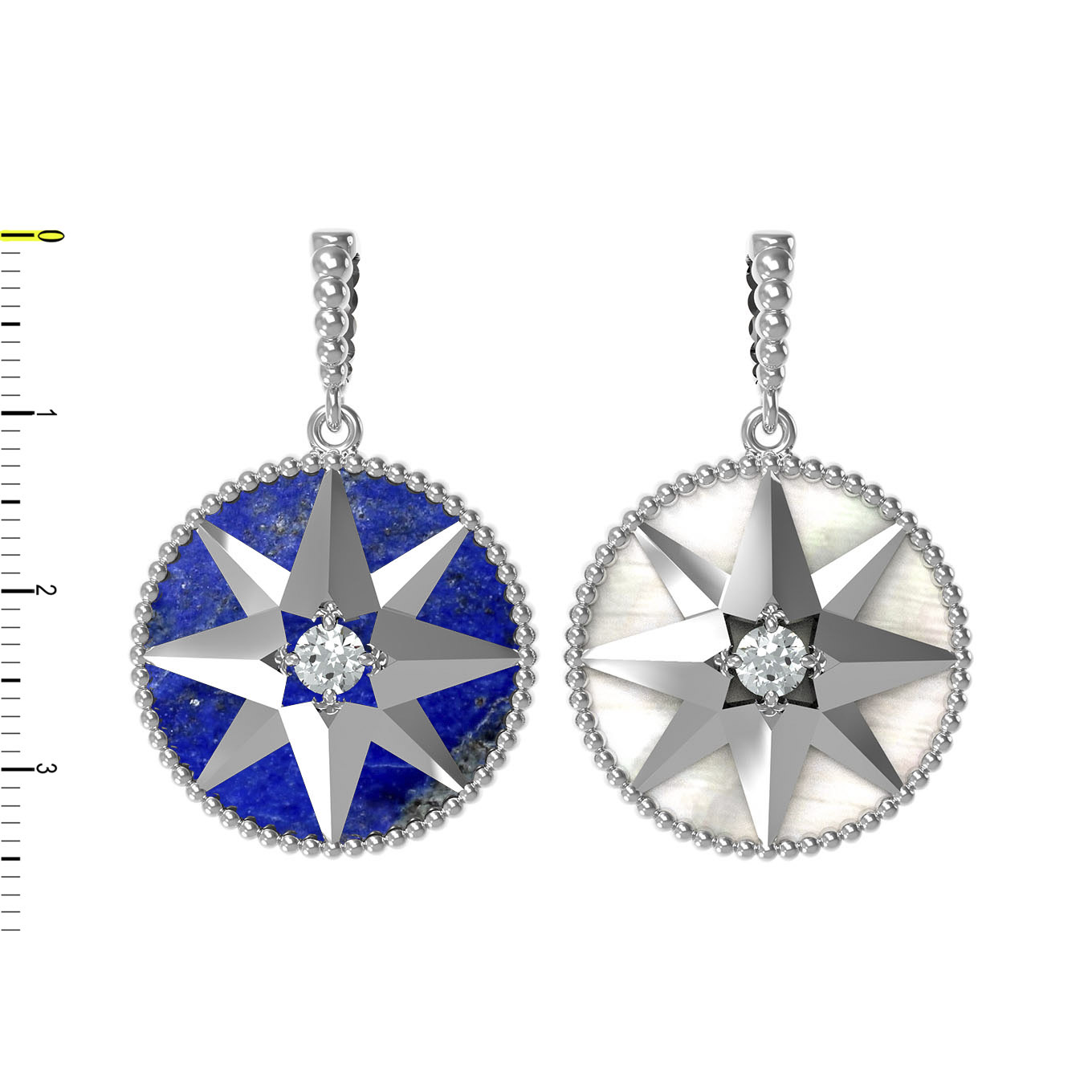 Подвеска из белого золота 585 пробы c фианитом, лазуритом и перламутром
