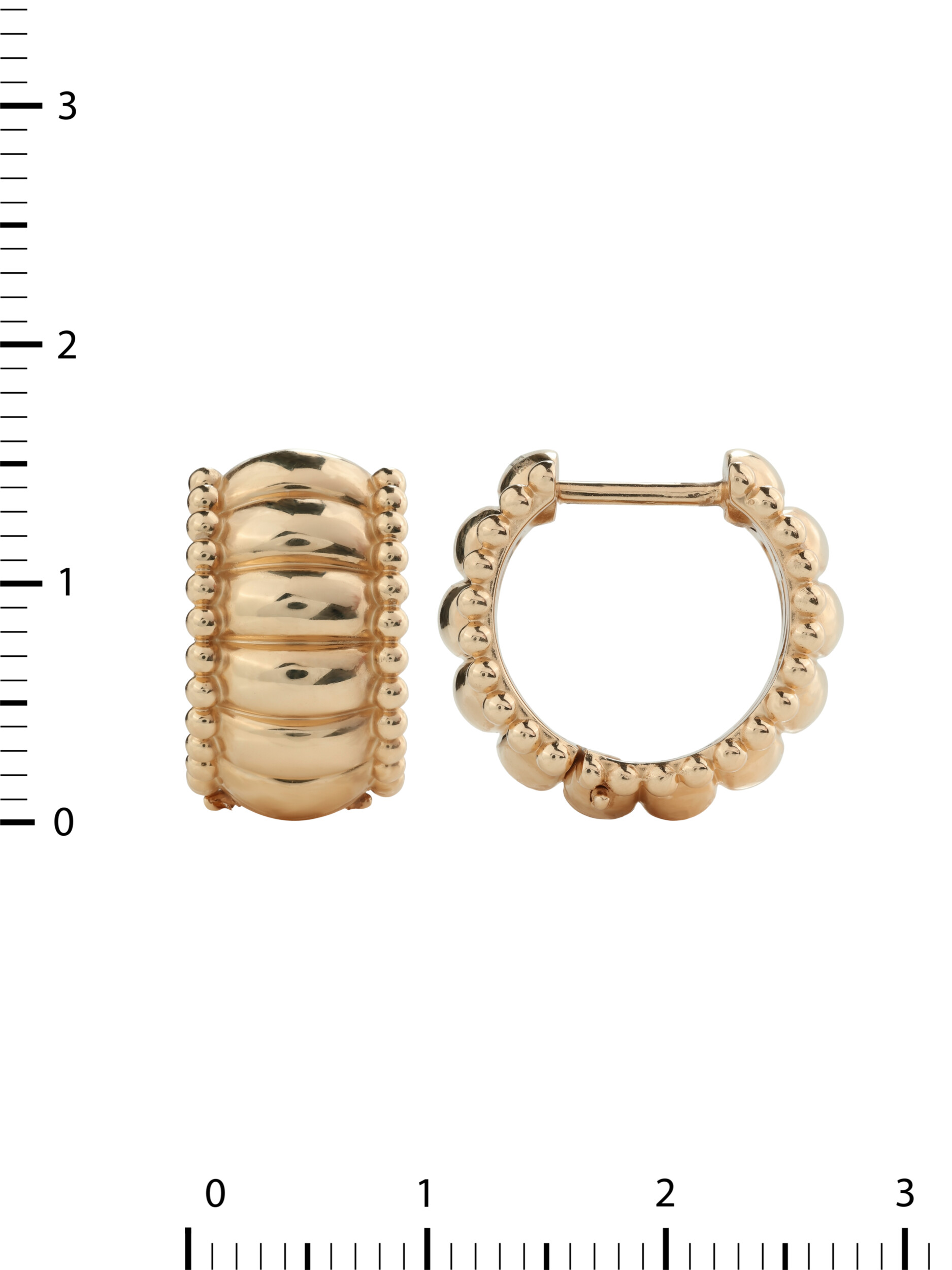Эти изысканные серьги из коллекции Vioretty — Firenze воплощают в себе дух утонченности и высокого ювелирного искусства. Изделие выполнено из красного золота 585 пробы, что придает аксессуару теплый и благородный оттенок. Дизайн украшения вдохновлен итальянским стилем, для которого характерны выразительные формы, объемные линии и внимание к деталям. Гладкие, округлые элементы в сочетании с изящным бисерным декором по краям создают динамичный и современный образ, который привлекает внимание своей безупречной эстетикой.