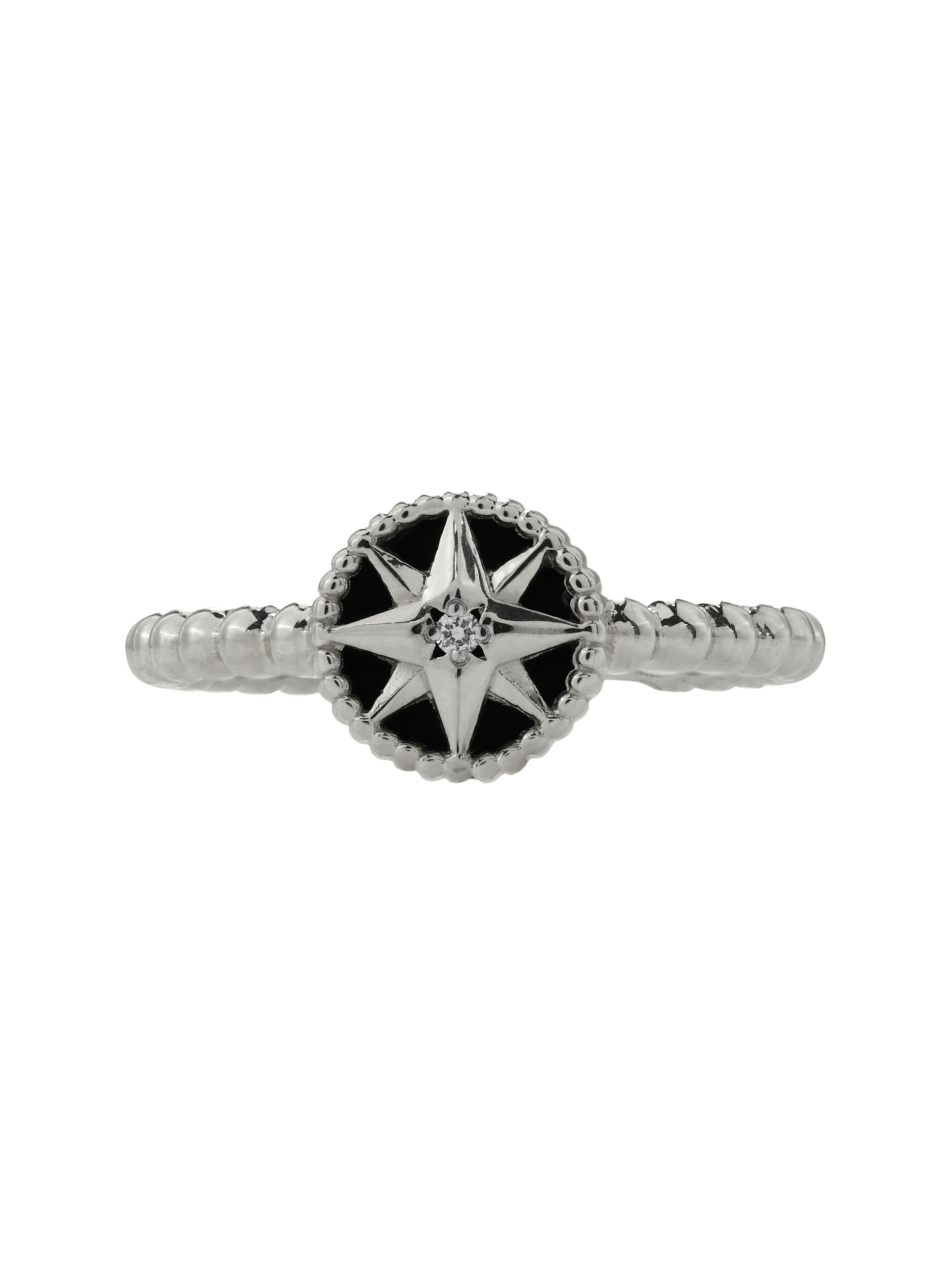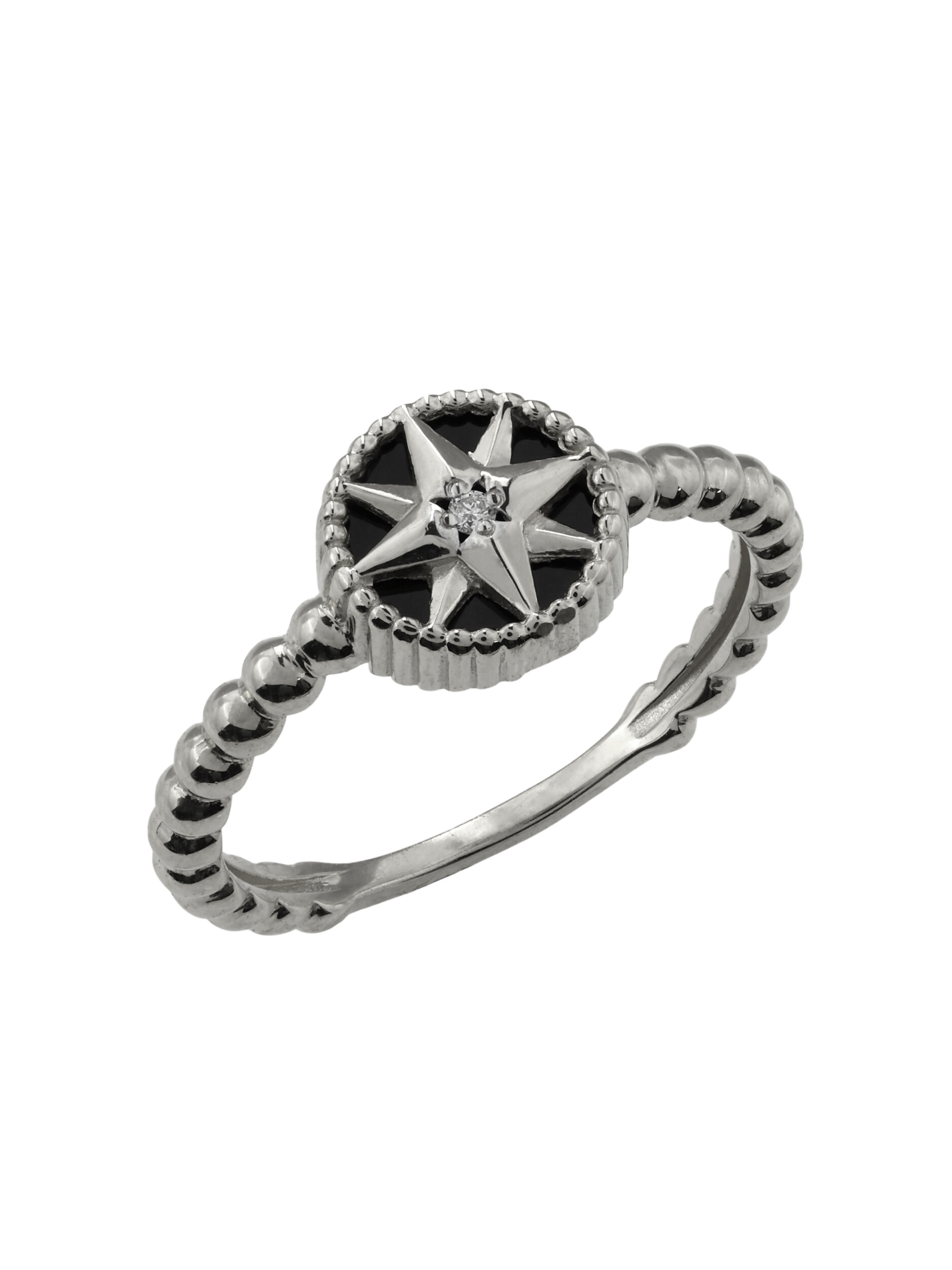 Кольцо из белого золота 585 пробы из коллекции De Luxe — Звёзды — Бриллианты станет безупречным акцентом вашего образа. Дизайн изделия вдохновлен небесной тематикой и выполнен в форме изящной звезды. Мастерское сочетание материалов создает выразительный контраст: благородный блеск белого золота подчеркивается глубоким черным цветом оникса и искристым сиянием бриллианта. Две вставки круглой формы гармонично дополняют центральную композицию.