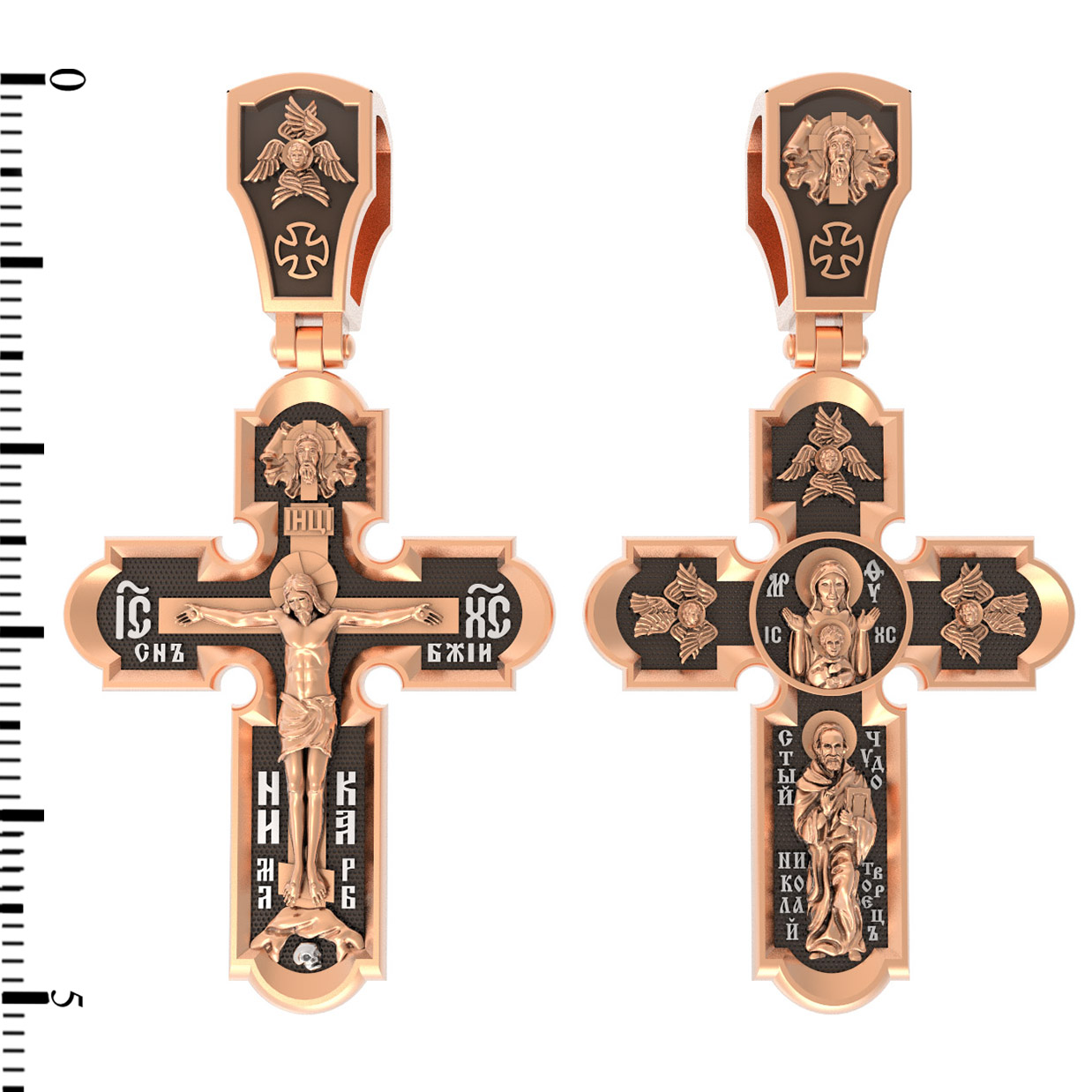 У основания креста в полный рост изображен самый любимый святой Православной Церкви — Николай Чудотворец. Святой почитается как целитель болезней, покровитель путешествующих, особенно по морю, помощник в торговле, учебе, а также в поисках достойного супруга.