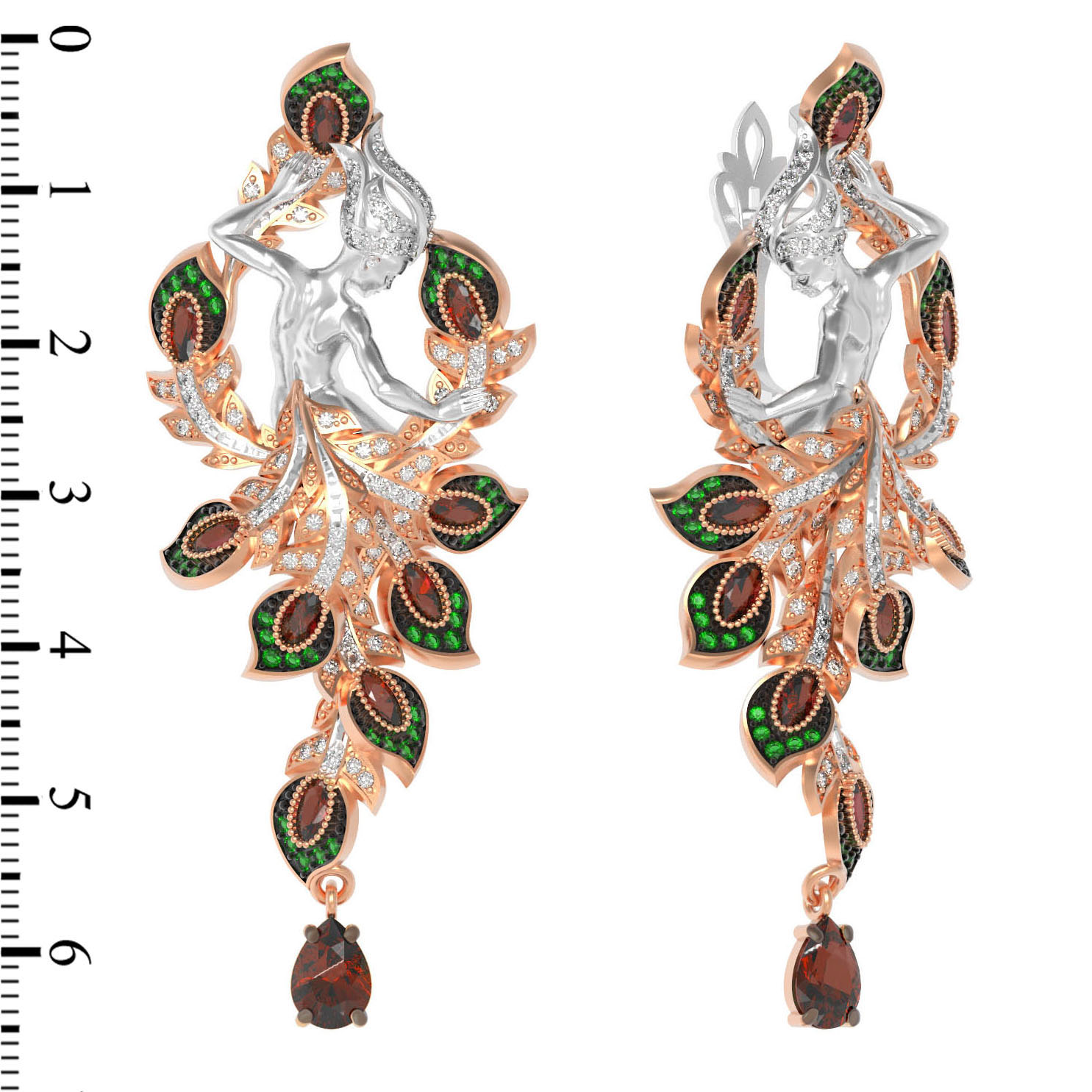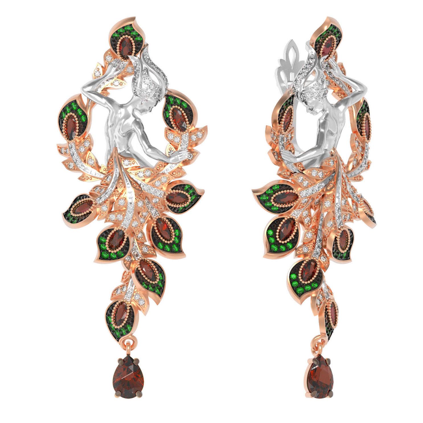 Серьги из красного золота 585 пробы c фианитом и гранатом