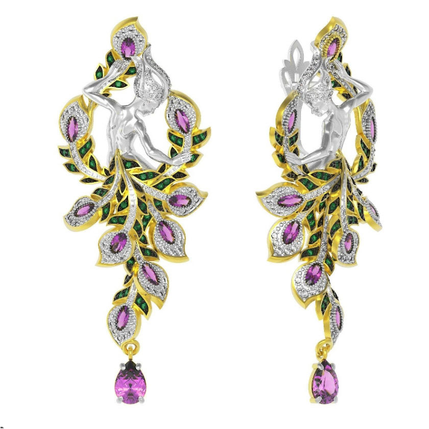 Серьги из лимонного золота 585 пробы из коллекции De Luxe — Мифология — это ювелирное произведение искусства, воплощающее эстетику мифологии. Дизайн изделия вдохновлен легендарными образами, где центральным элементом становится изящная фигура, обрамленная роскошным декором. Эти серьги созданы для тех, кто ценит статусность и предпочитает смелые, художественные украшения, способные стать главным акцентом образа.