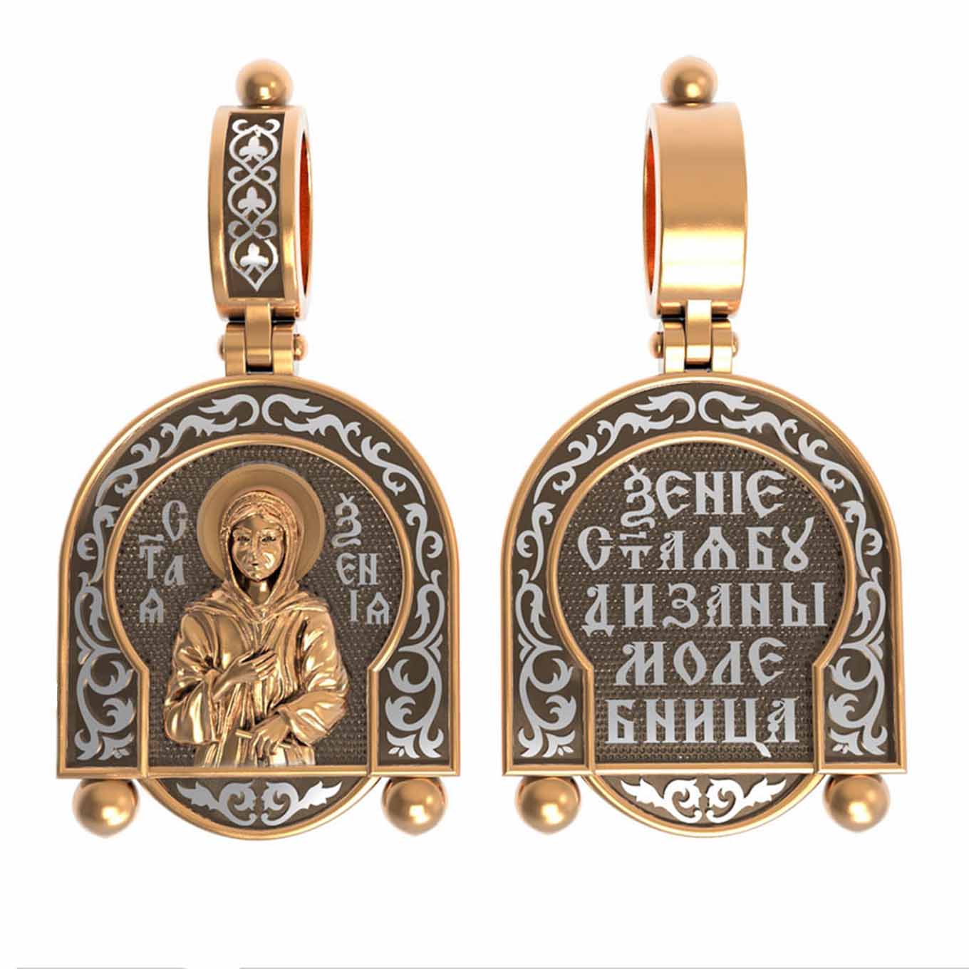 На оборотой стороне образка написана молитва: «Ксения святая, буди за нас молебница».