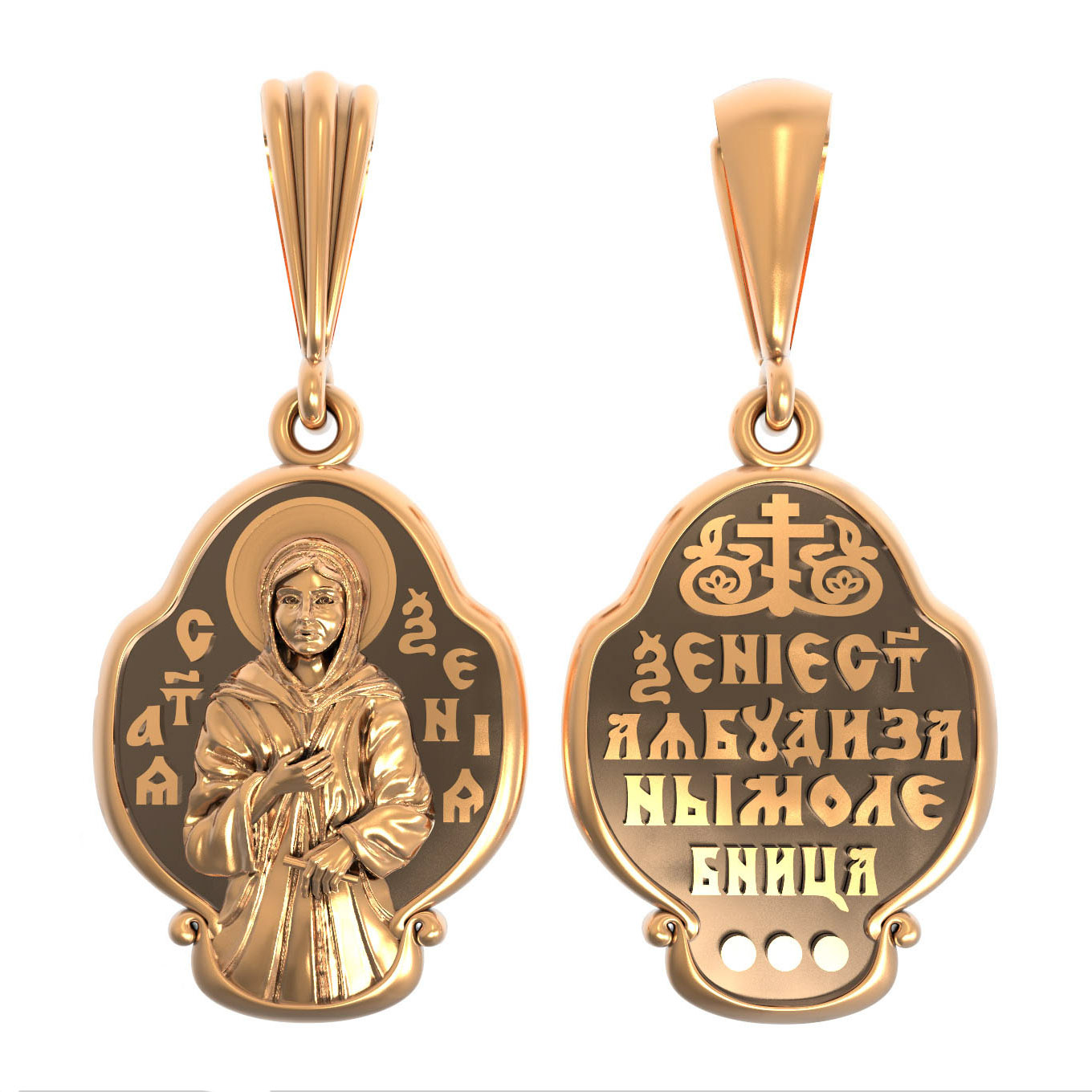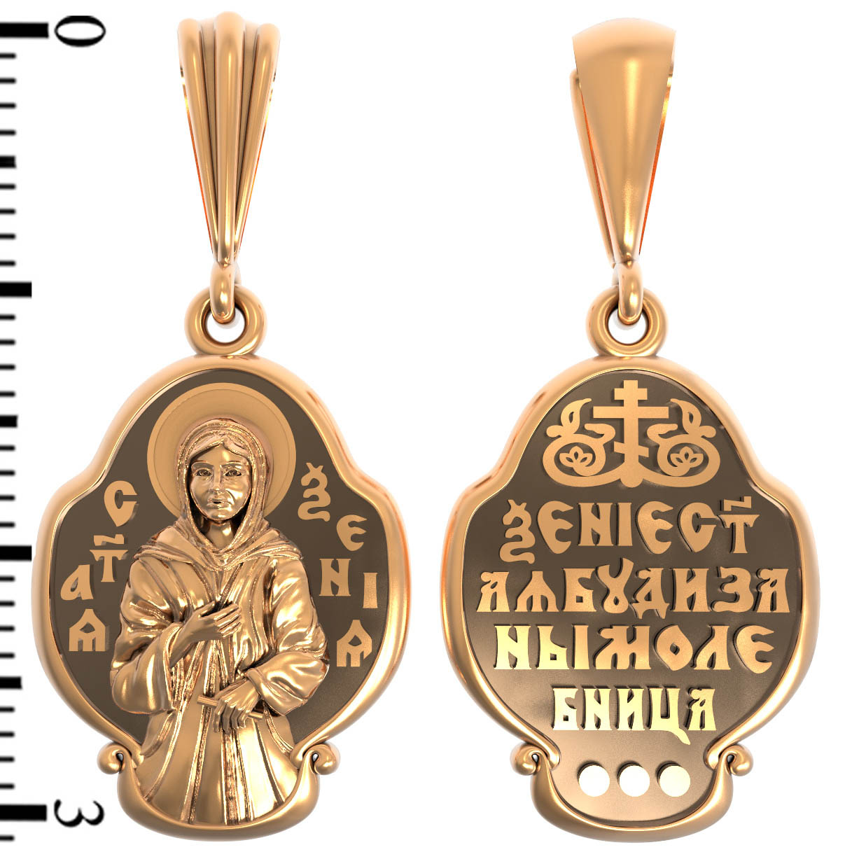 На лицевой стороне образка изображена Святая блаженная Ксения Петербургская, в миру Ксения Григорьевна Петрова.