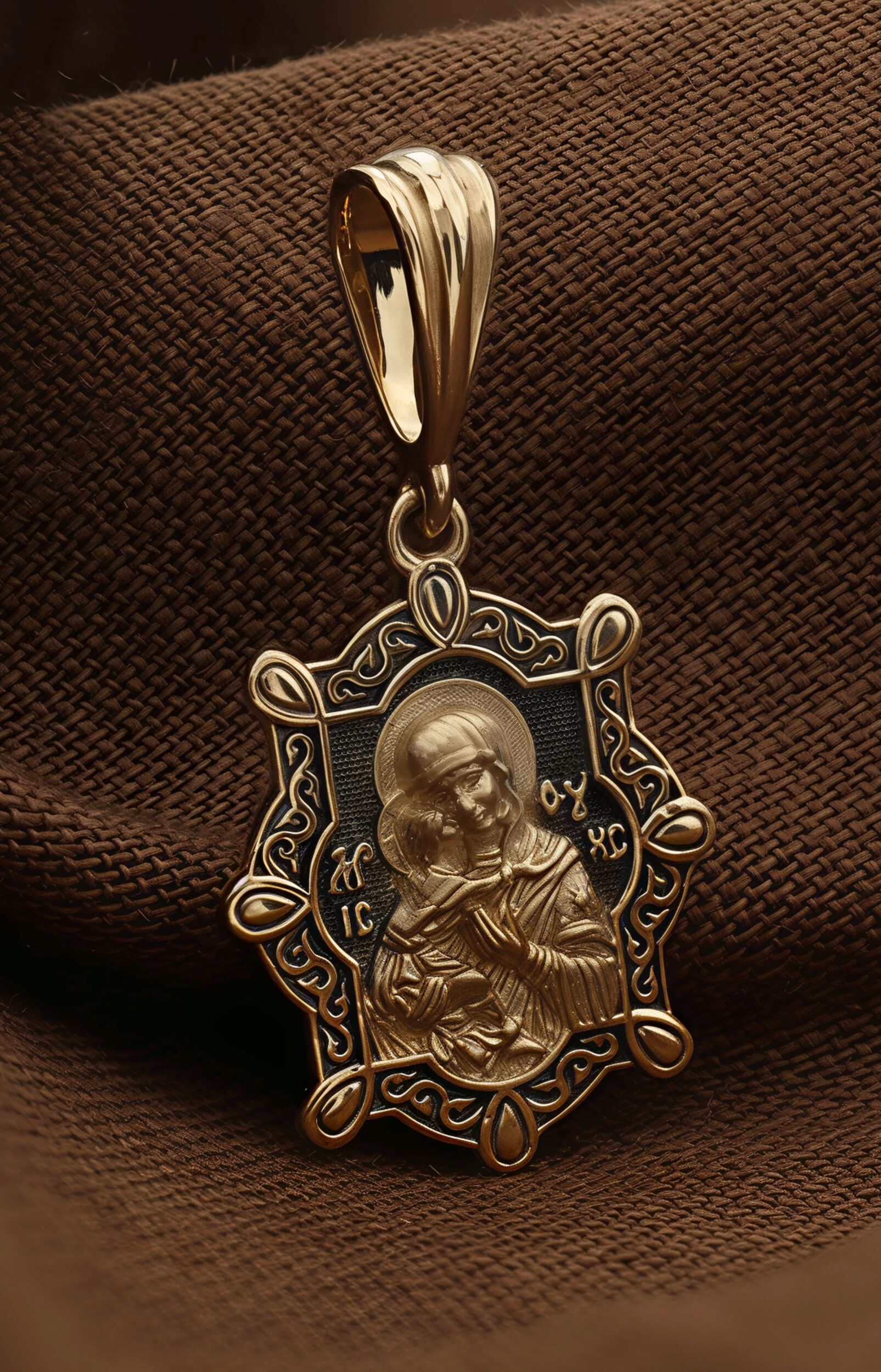 Лицевую сторону возглавляет Владимирская икона Божией Матери — самая великая русская святыня, многие века бывшая олицетворением нашей земли. Перед ней венчались на царство государи, избирались патриархи. Пречистой Богородице Владимирской клялись в верности Отечеству солдаты и за нее умирали на поле брани. Именно на ее защиту более всего уповала Россия в самые страшные периоды своей истории. Владимирская икона Божией Матери, по преданию, была написана на доске трапезного стола из дома Иисуса Христа. На Русь она была привезена в начале XII века и с тех пор почитается как главная святыня нашего Отечества. Перед ней молитвенно просят Богородицу об исцелении от телесных недугов, в частности, заболеваний сердца и сердечнососудистой системы. За помощью к ней обращаются во время бедствий, когда нуждаются в защите от врагов.