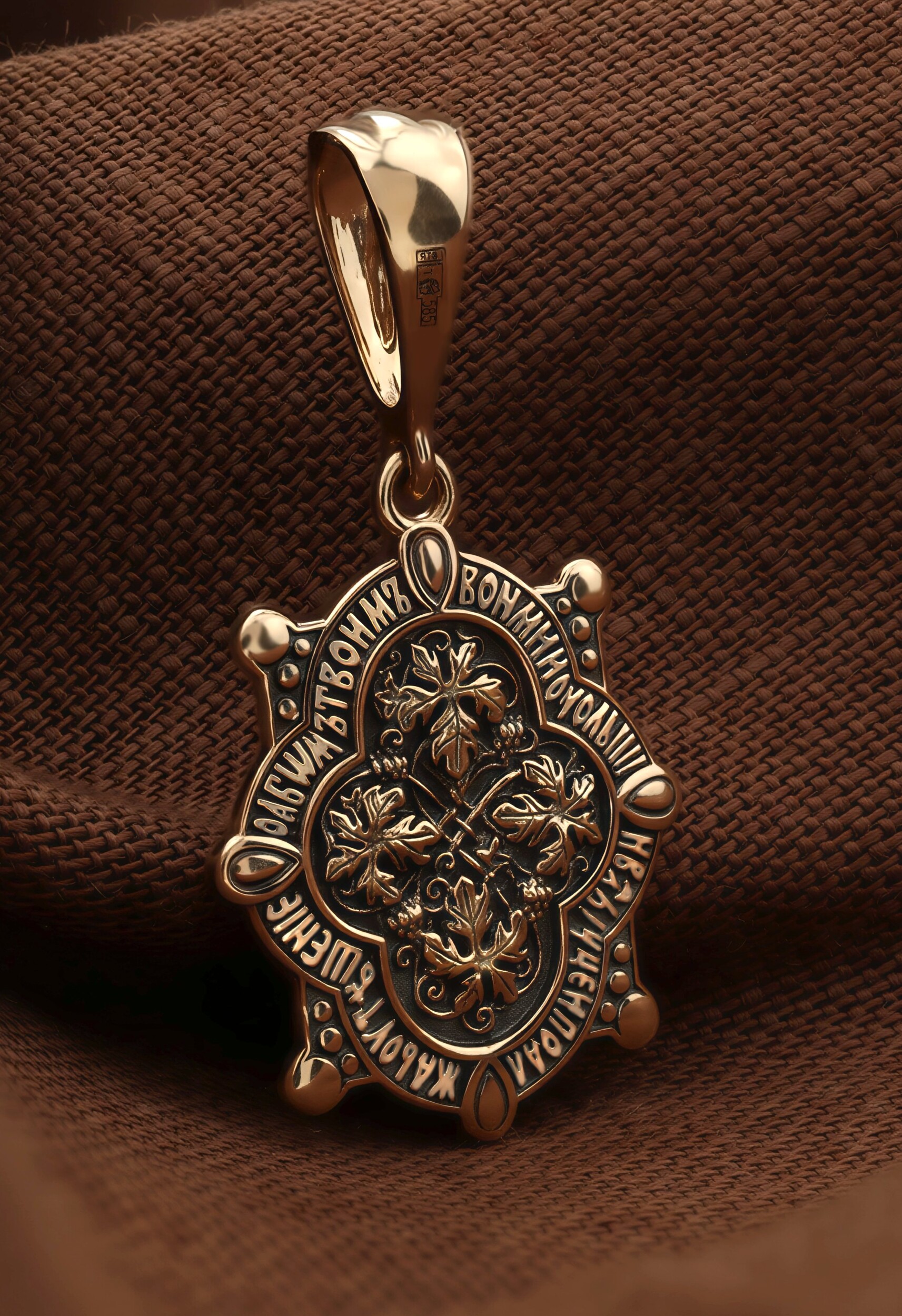 На оборотной стороне изображена виноградная лоза — символы церкви и евхаристии. «Я есмь лоза, — говорил Иисус Христос Своим ученикам, — а вы ветви; кто пребывает во Мне, и Я в нем, тот приносит много плода» (Ин. 15, 5), «Я есмь истинная виноградная лоза, а Отец Мой — виноградарь». Вокруг образка написана молитва к Пресвятой Богородице: «Вонми и услыши, Владычице, и подаждь утешение рабом Твоим».
