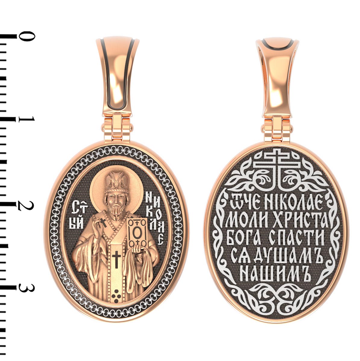 Лицевую сторону возглавляет икона святителя Николая Чудотворца. Святитель Николай родился во второй половине III века в Малой Азии в Ликийском городе Патары. С рождения Божий Угодник проявлял необыкновенные дарования. Сохранилось Предание, что во время крещения он, никем не поддерживаемый, простоял в купели три часа. С детства святитель избегал пустых развлечений, любил молитву, прекрасно учился и проводил свободное время за чтением Священного Писания. По достижении зрелого возраста жители Патар выбрали его своим пресвитером. Несколько лет спустя св. Николай стал епископом в городе Миры, столице Ликии.