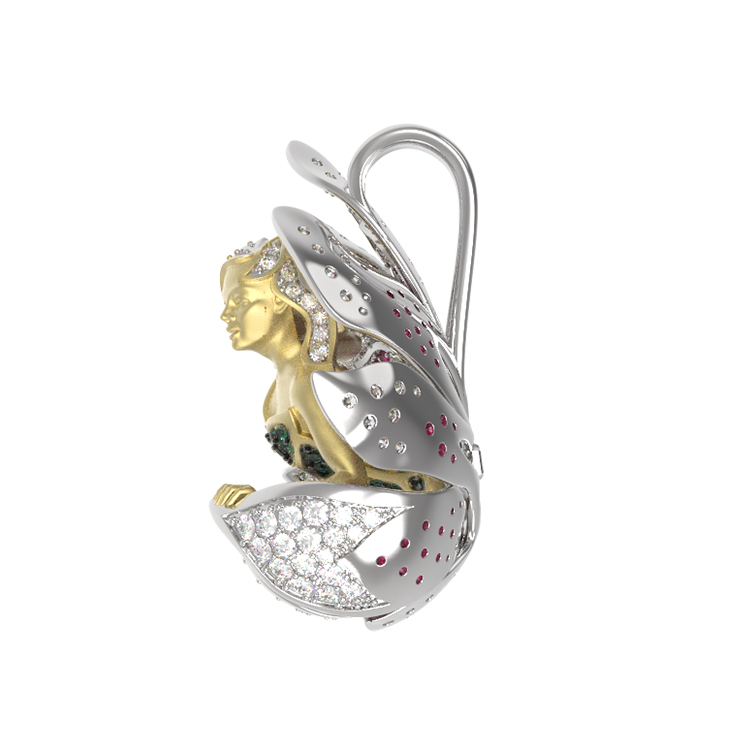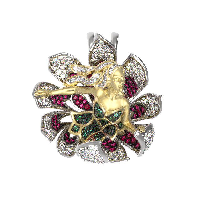 Откройте для себя магию искусства с этой изысканной подвеской из белого золота 585 пробы. Украшение из коллекции De Luxe — Мифология представляет собой настоящее воплощение мифологического дизайна, где мастерство ювелиров встречается с вечной красотой легенд. Центральным элементом композиции является искусная фигура, словно ожившая в драгоценном металле, окруженная цветочным орнаментом.