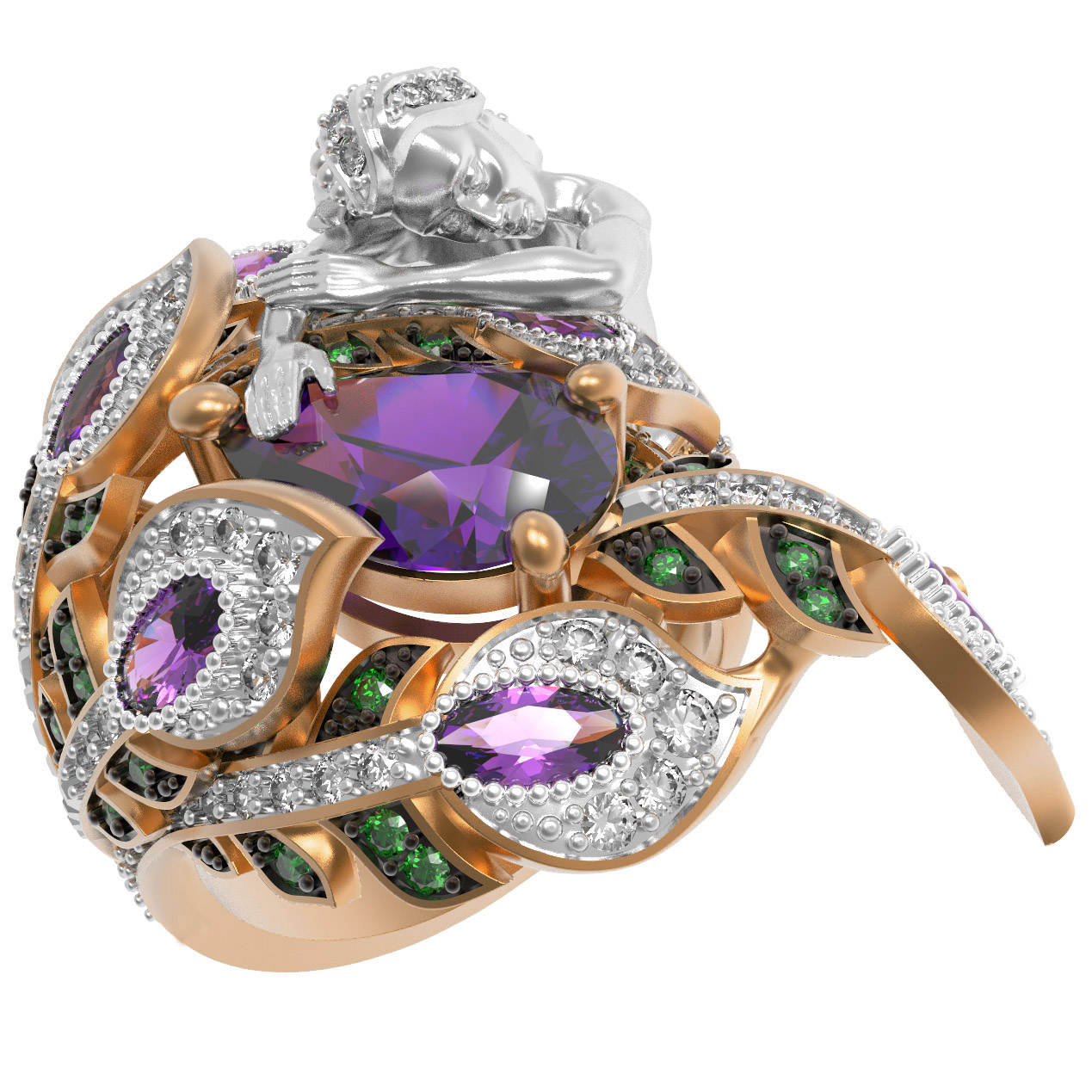 Кольцо из красного золота 585 пробы c фианитом и аметистом