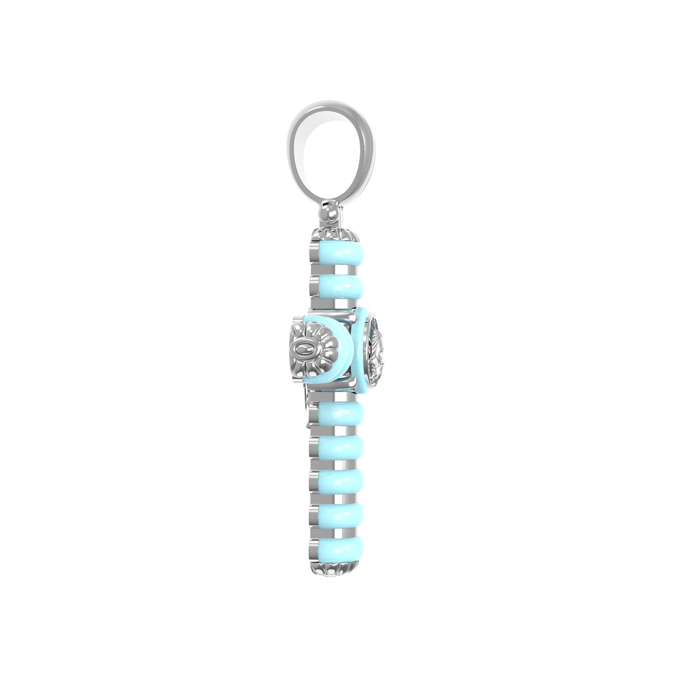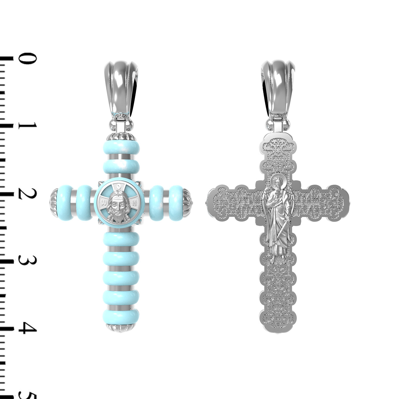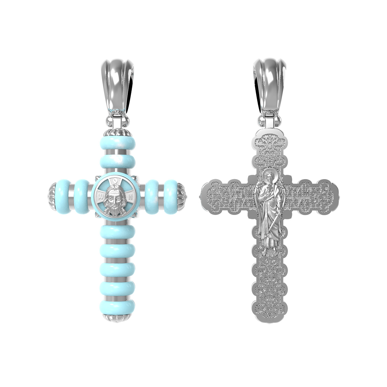Крест из белого золота 585 пробы c бирюзой