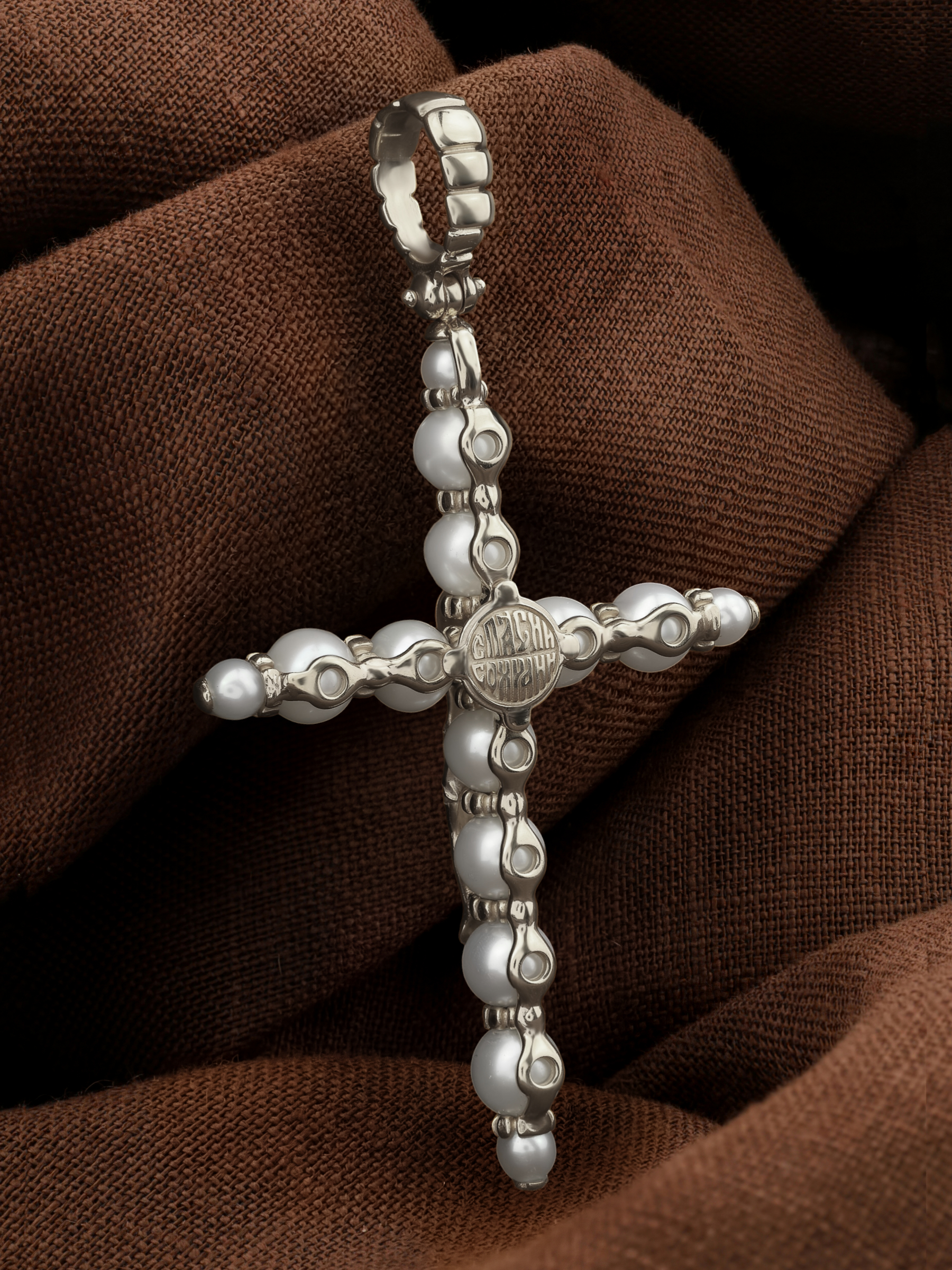 Крест из белого золота c жемчугом
