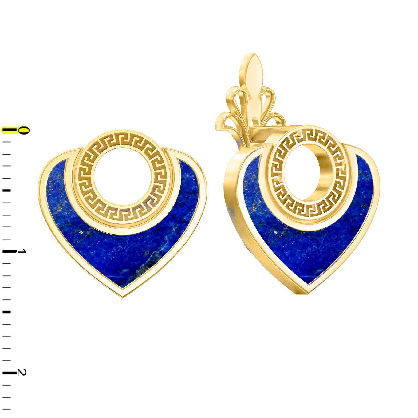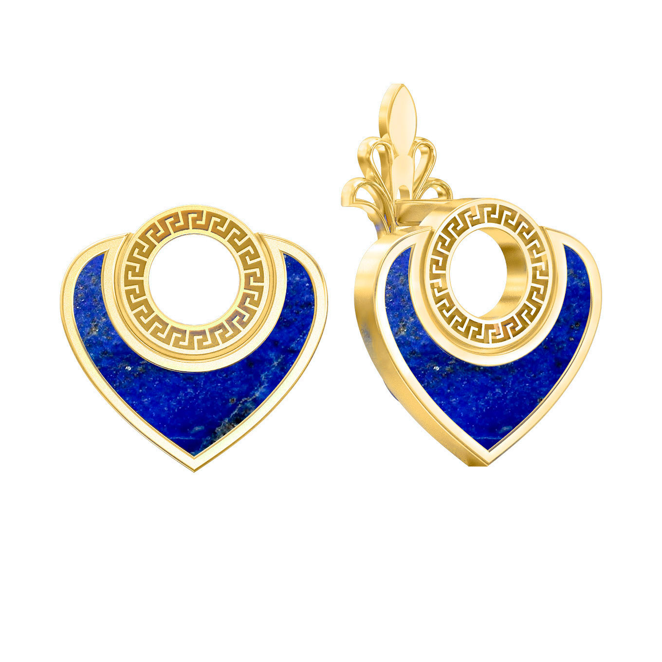 Особую изысканность серьгам придает тщательная проработка деталей: вставки из лазурита подчеркнуты геометрическим орнаментом, который гармонично дополняет общую форму сердца. Это изделие создано для ценителей эстетики, желающих подчеркнуть свою индивидуальность. Украшение универсально и подходит как для женщин, так и для мужчин, предпочитающих статусные и необычные аксессуары.