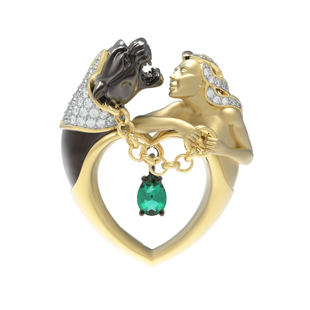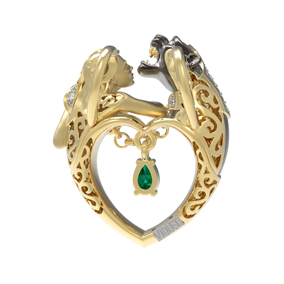 Подвеска из лимонного золота 585 пробы c фианитом и хризопразом