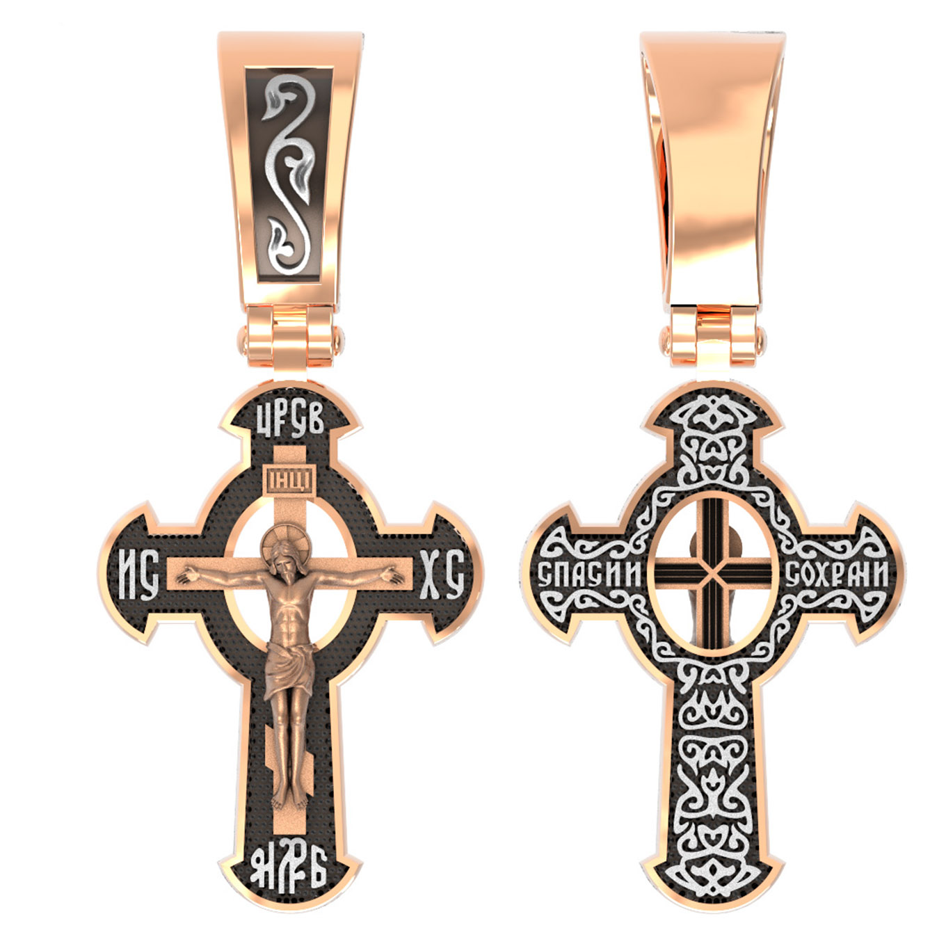 Оборотная сторона креста украшена растительным орнаментом. Помещенный на крест орнамент символизирует жизнедательную силу, животворное тепло креста. В растительный узор, на горизонтальной перекладине, вписано молитвенное славословие: «Спаси и сохрани». Эта надпись означает непрерывную молитву, совершаемую носителем данного креста.