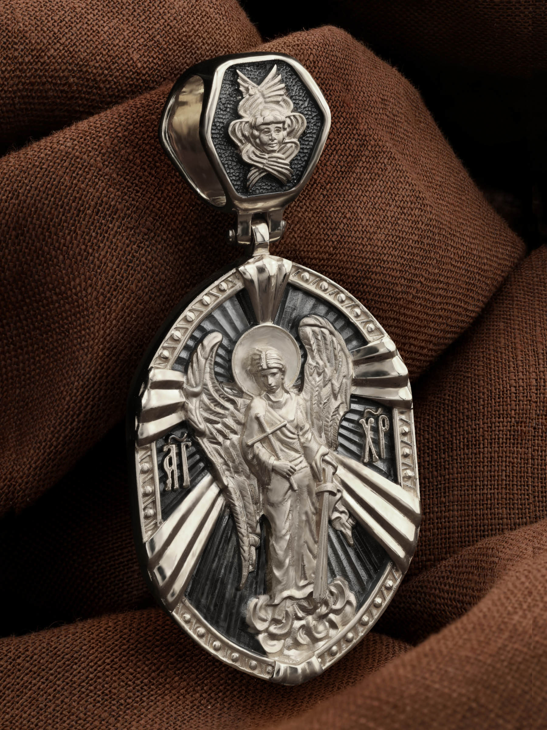 На кулонном кольце изображен Спас Нерукотворный — Символ вочеловечившегося Божества.