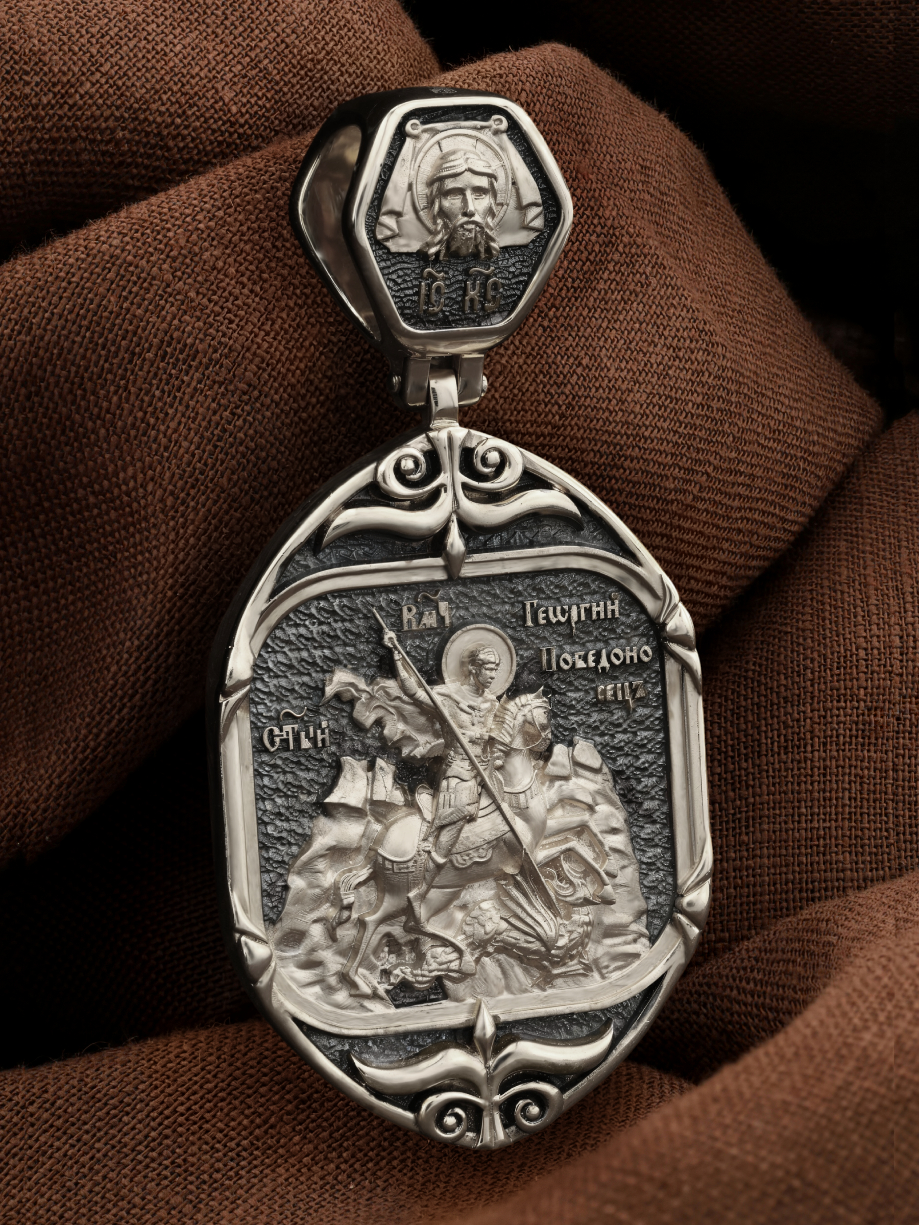 Основой композиции лицевой стороны является изображение Святого Георгия Победоносца.
