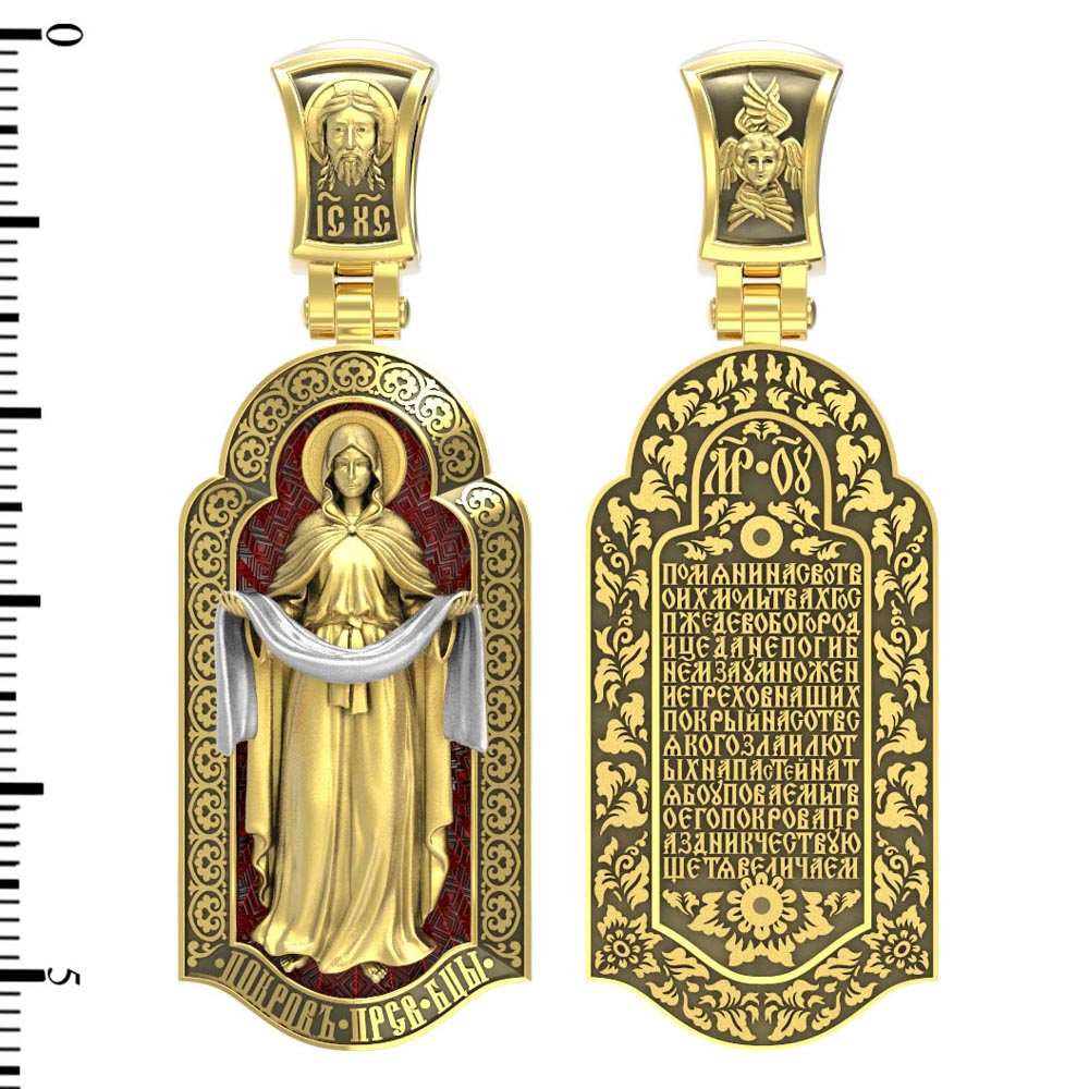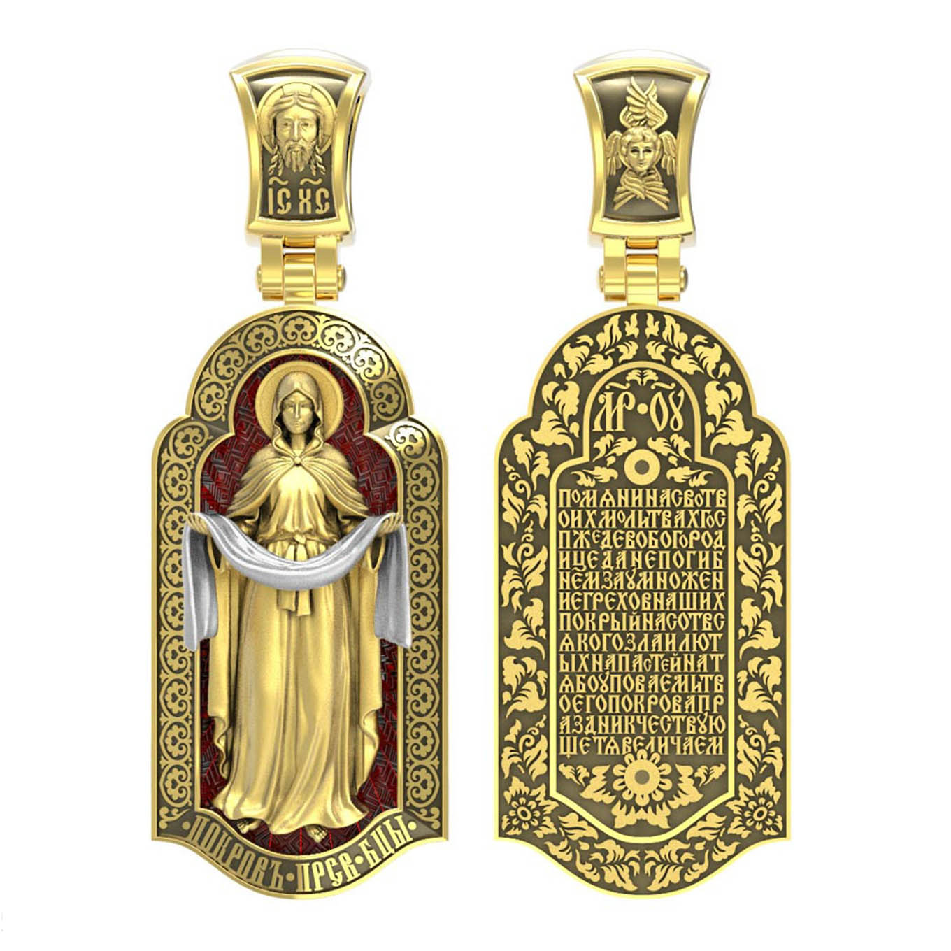 На лицевой части образка изображена икона Покров Пресвятой Богородицы. Праздник Покрова Божией Матери является воспоминанием чуда, которое произошло во Влахнернской церкви 1 (14) октября 910 года: Пресвятая Богородица явилась верующим над алтарем храма и распростерла над ними Свое покрывало. В этот день Божья Матерь открыла людям, что Она является Ходатаицей за них перед Богом. Богородица простирает Свой молитвенный покров над всеми православными христианами и умоляет Сына Своего о даровании вечного спасения каждому человеку.