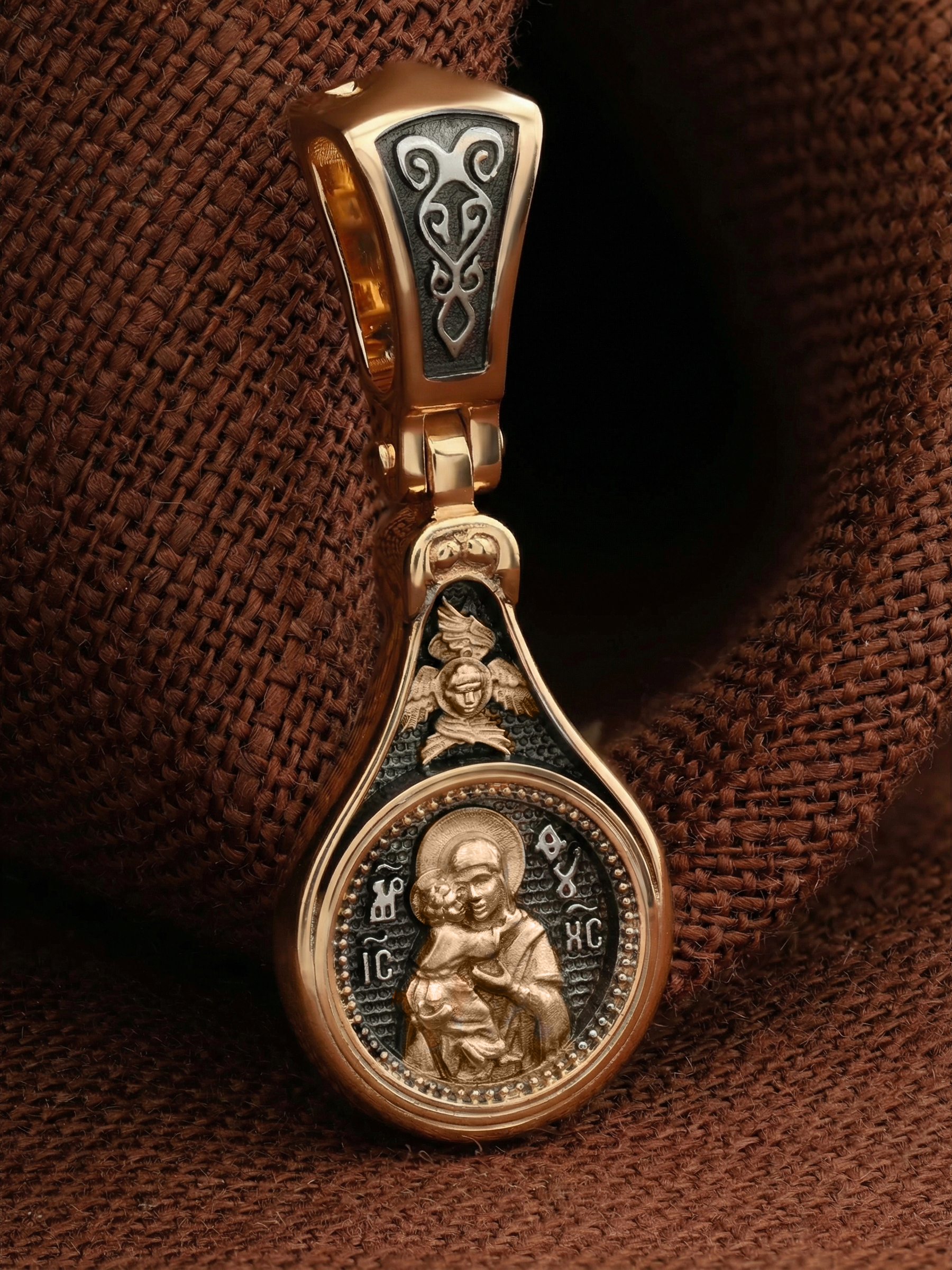 На лицевой стороне образка изображена Владимирская икона Божией Матери.