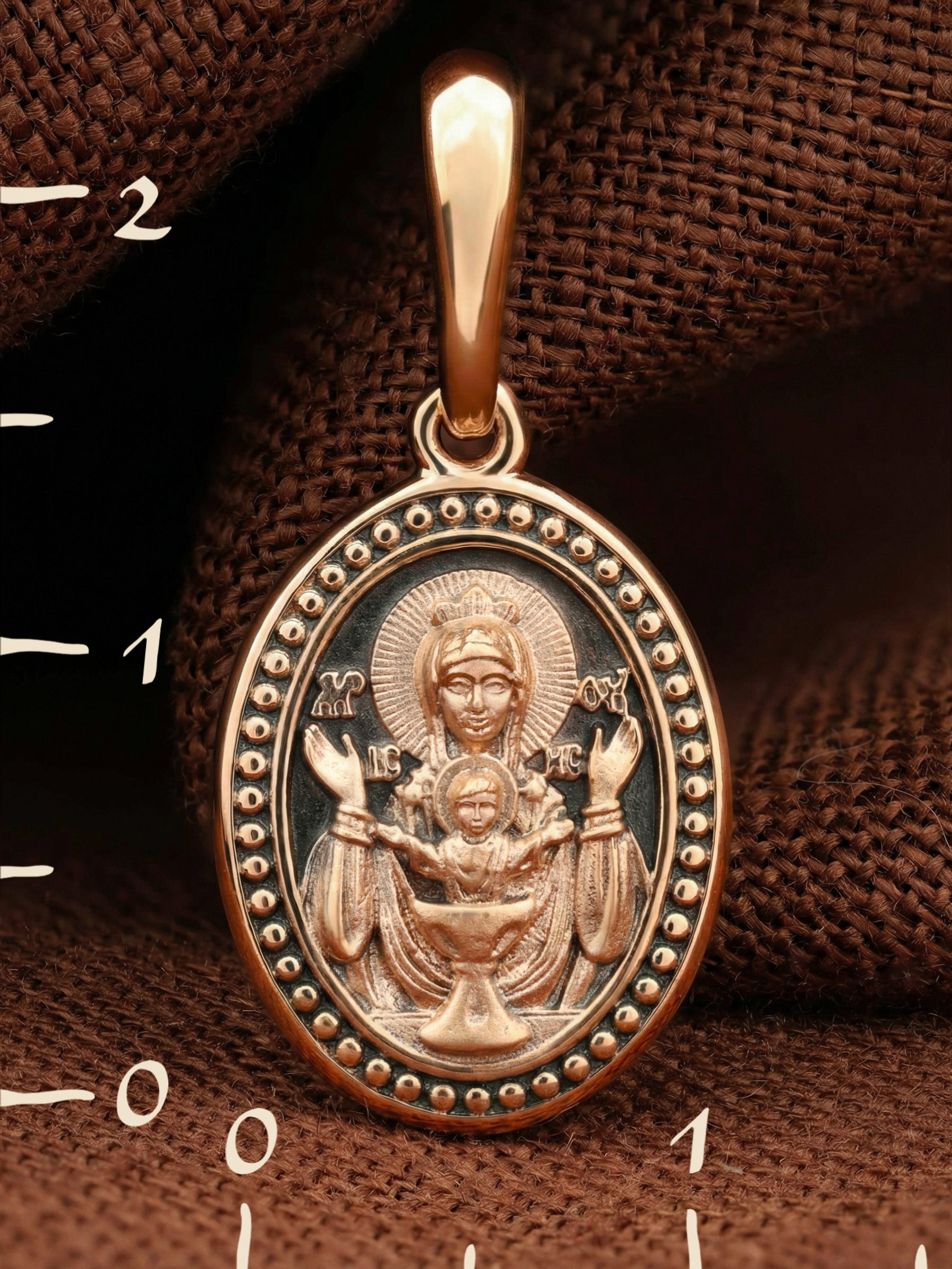 На лицевой части образка изображена икона Божией Матери «Неупиваемая чаша». Икона славится помощью в исцелении зависимостей, помогает людям обрести свободу от греховных страстей.