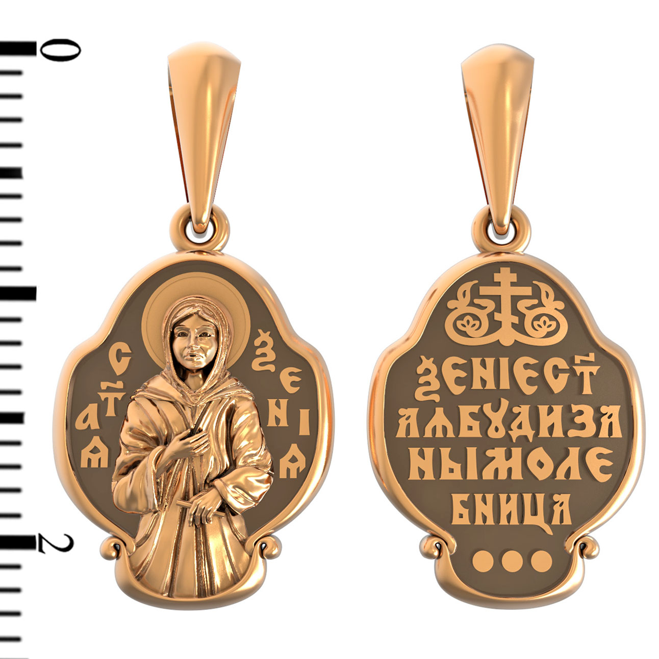 На лицевой стороне образка изображена Святая блаженная Ксения Петербургская, в миру Ксения Григорьевна Петрова.