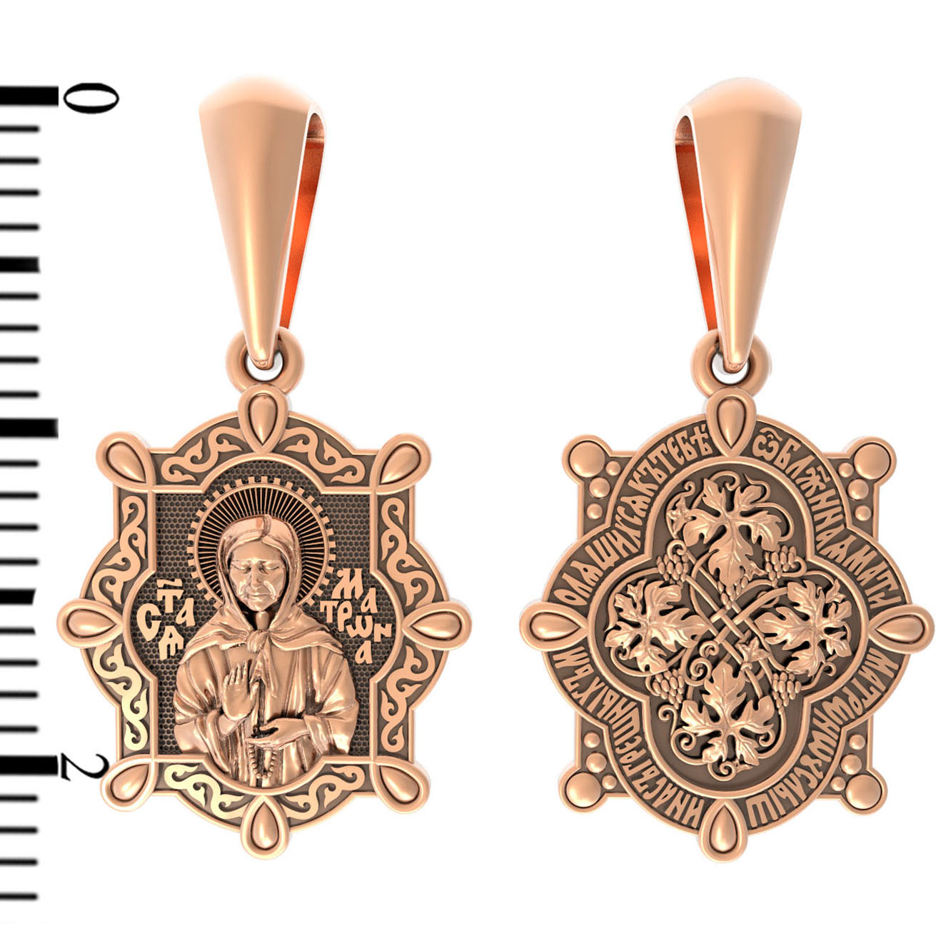 На обороте образка написана молитва: «О блаженная мати Матроно, услыши нас грешных, молящихся к Тебе».