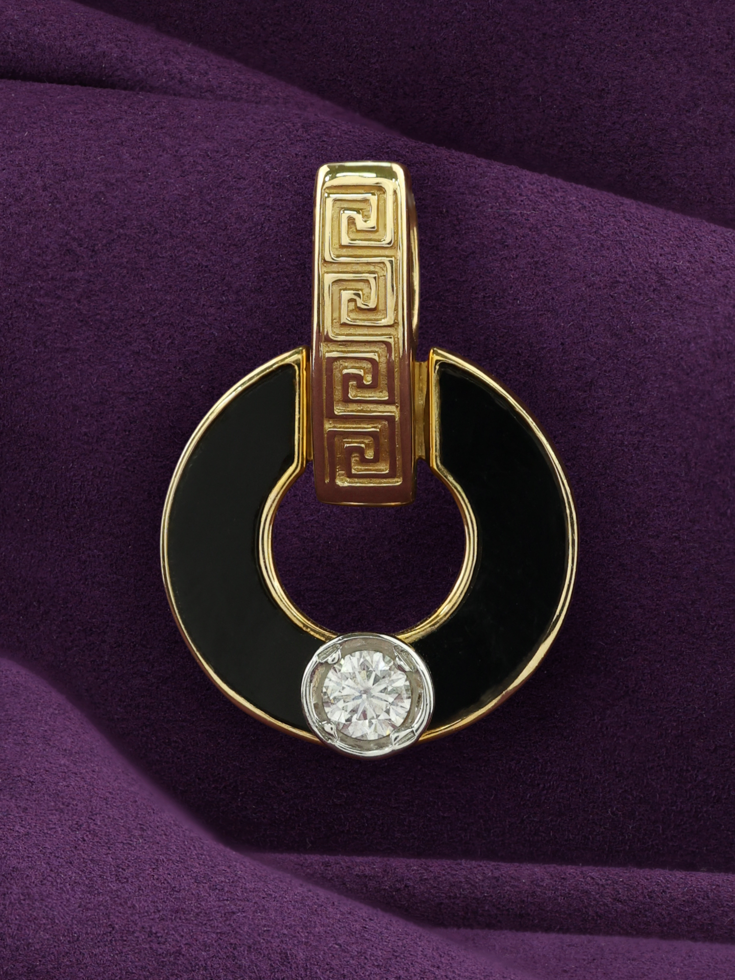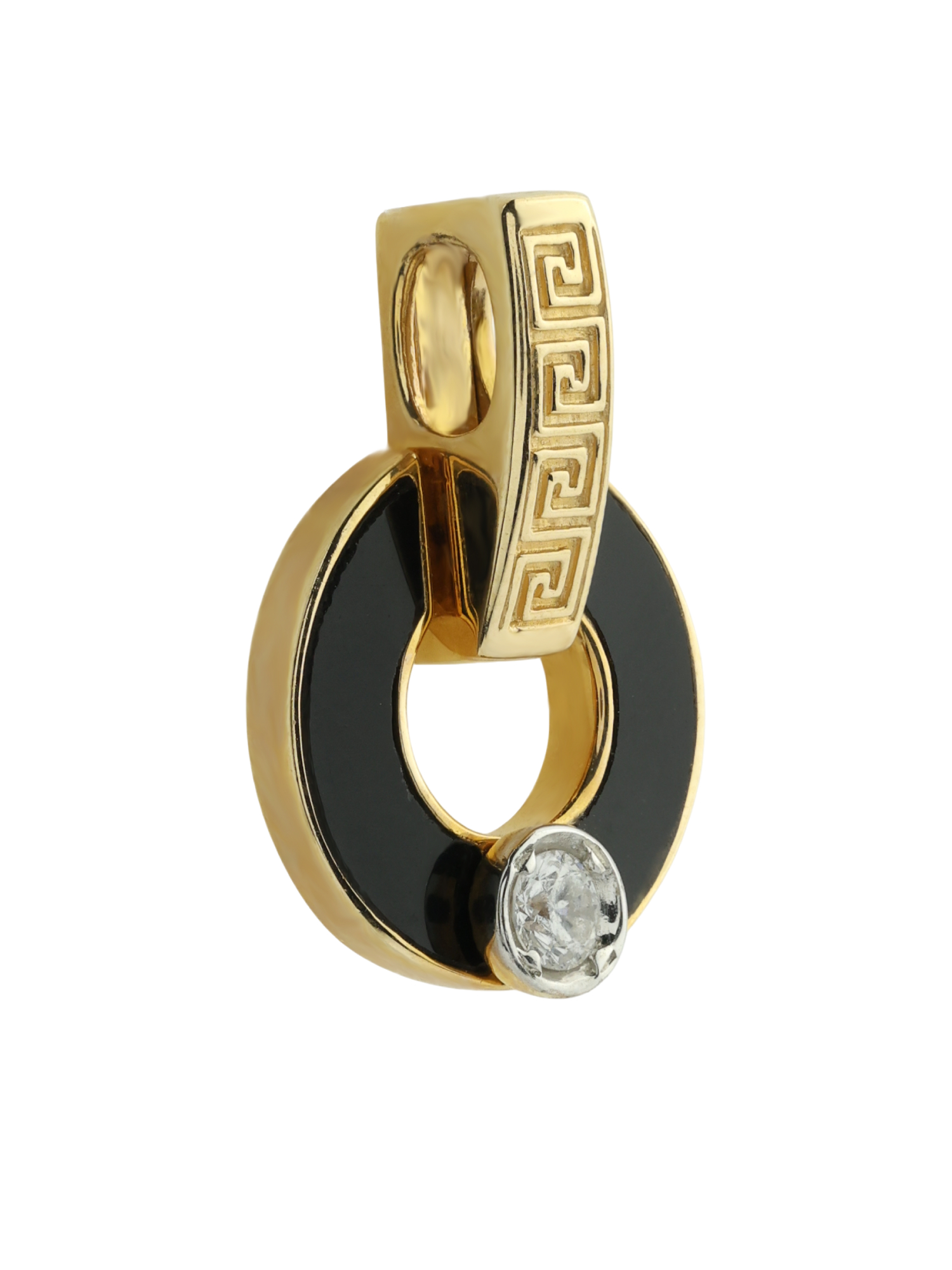 Подвеска из лимонного золота 585 пробы c бриллиантами и ониксом