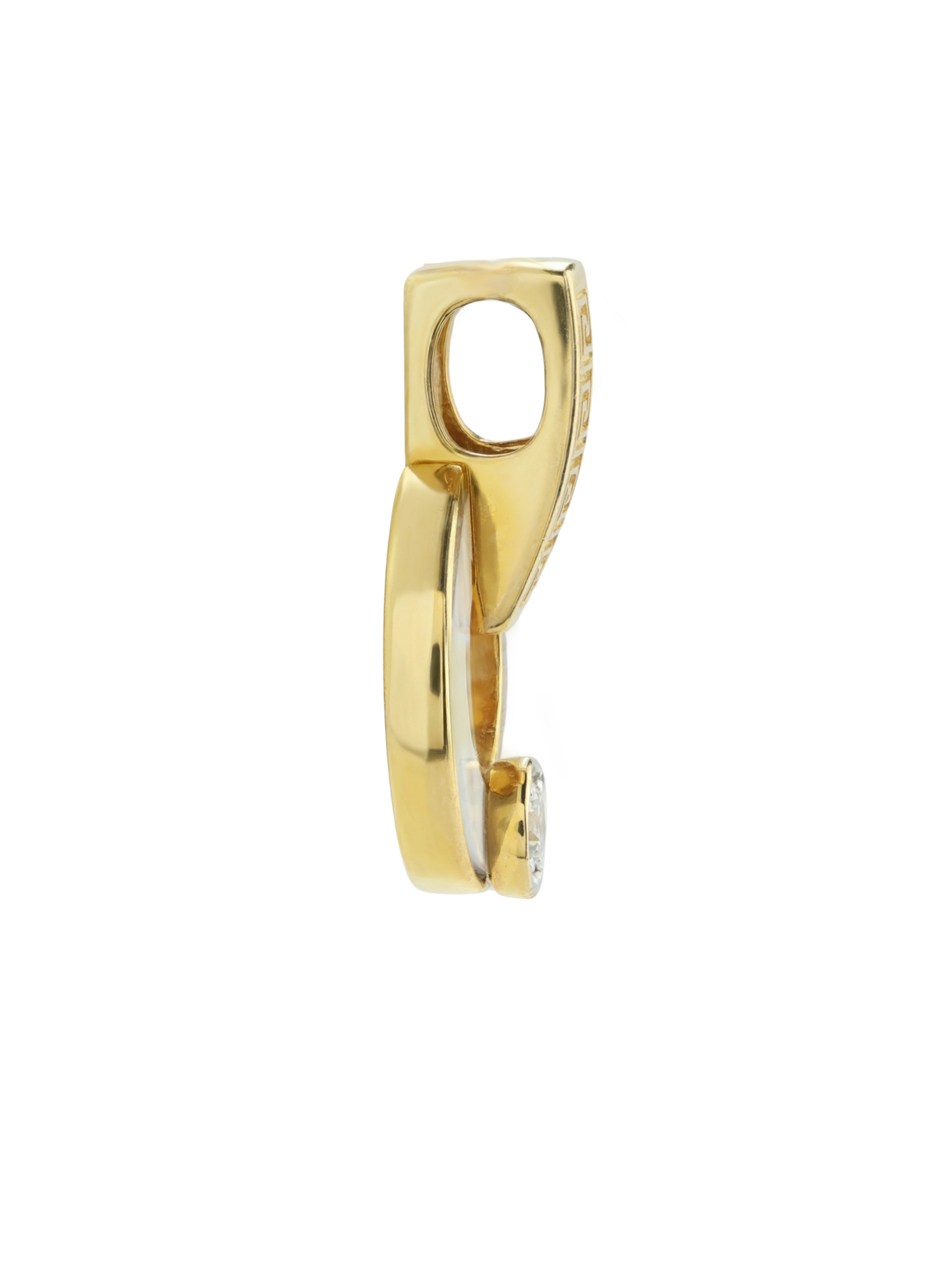 Подвеска из лимонного золота 585 пробы из коллекции De Luxe — Афина — это гармоничное сочетание классических мотивов и изысканного стиля. Украшение выполнено в выразительном дизайне, объединяющем символ греческого ключа на подвесном элементе и лаконичную форму полумесяца, обрамляющую вставку. Лимонное золото подчеркивает благородство изделия и придает ему особое сияние.