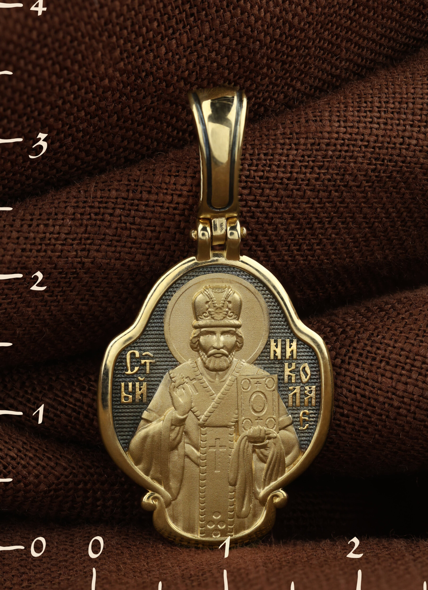 Лицевую сторону возглавляет икона святителя Николая Чудотворца. Святитель Николай родился во второй половине III века в Малой Азии в Ликийском городе Патары. С рождения Божий Угодник проявлял необыкновенные дарования. Сохранилось Предание, что во время крещения он, никем не поддерживаемый, простоял в купели три часа. С детства святитель избегал пустых развлечений, любил молитву, прекрасно учился и проводил свободное время за чтением Священного Писания. По достижении зрелого возраста жители Патар выбрали его своим пресвитером. Несколько лет спустя св. Николай стал епископом в городе Миры, столице Ликии.