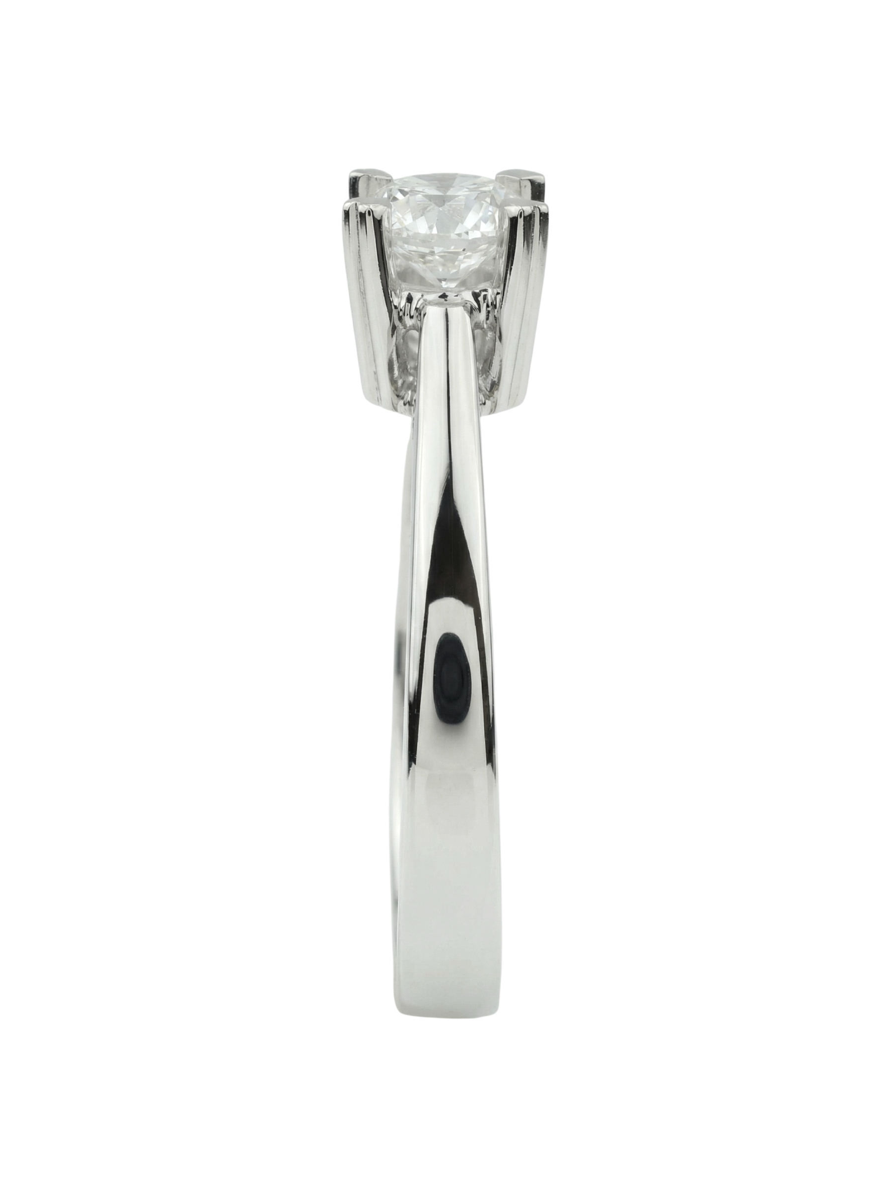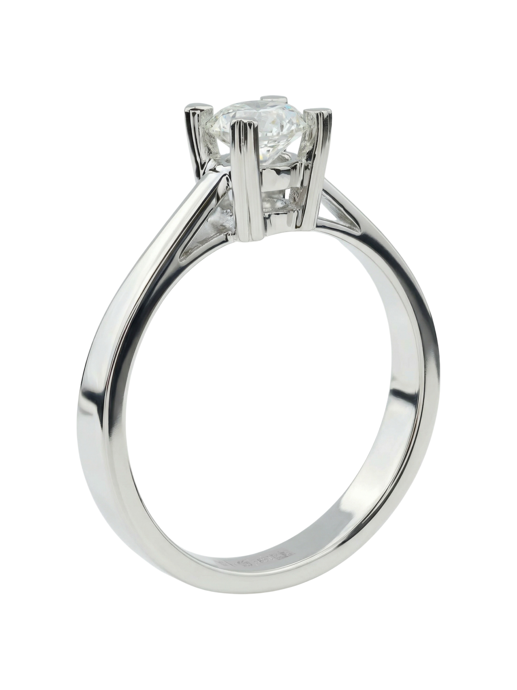 Дизайн модели сосредоточен на лаконичности: единственная вставка в форме круга надежно закреплена, что позволяет свету беспрепятственно играть в каждой грани камня. Белый цвет вставки идеально сочетается с цветом металла, создавая цельный и законченный образ. Это украшение станет прекрасным выбором для тех, кто ценит минимализм и безупречное качество исполнения.