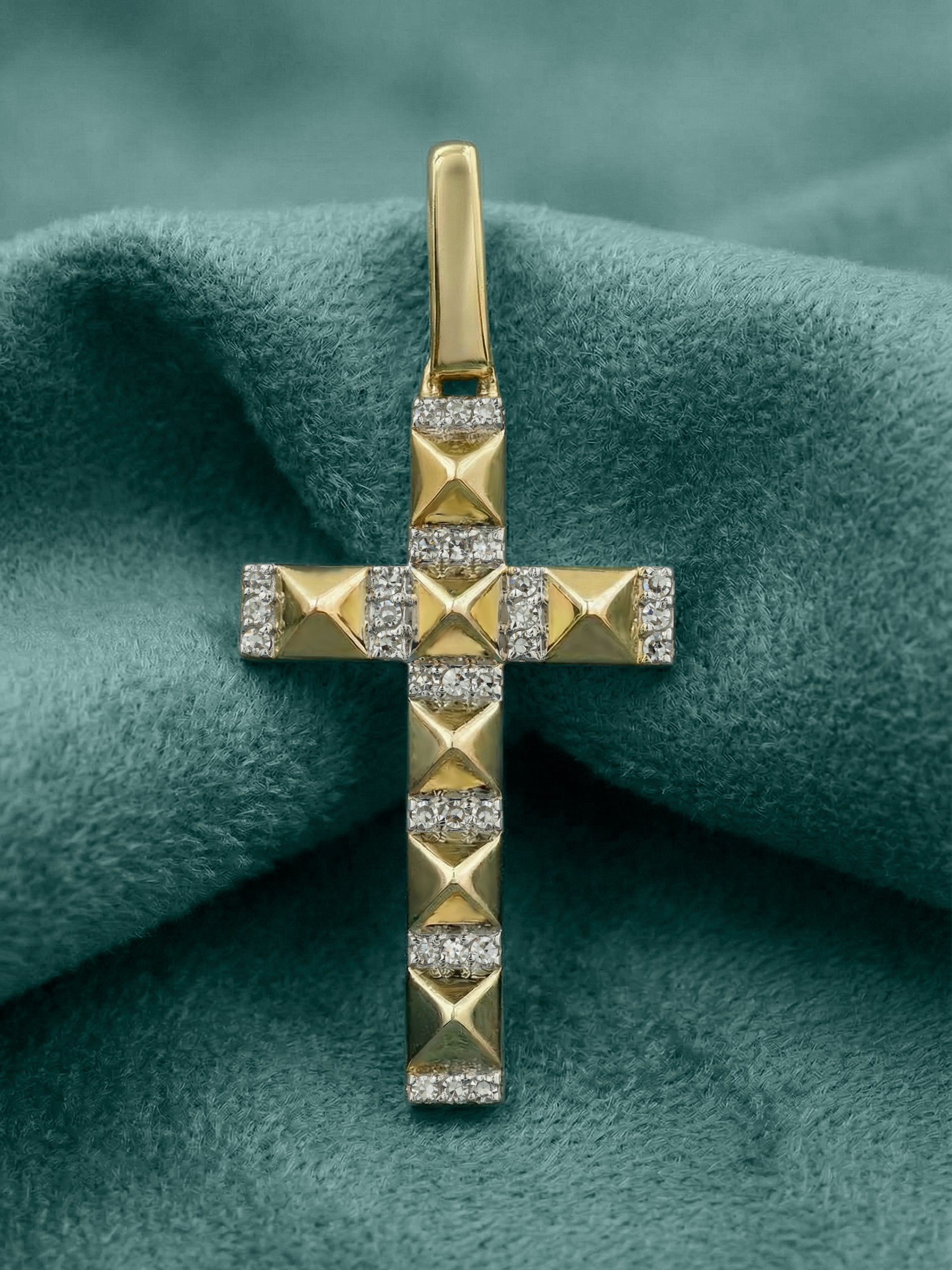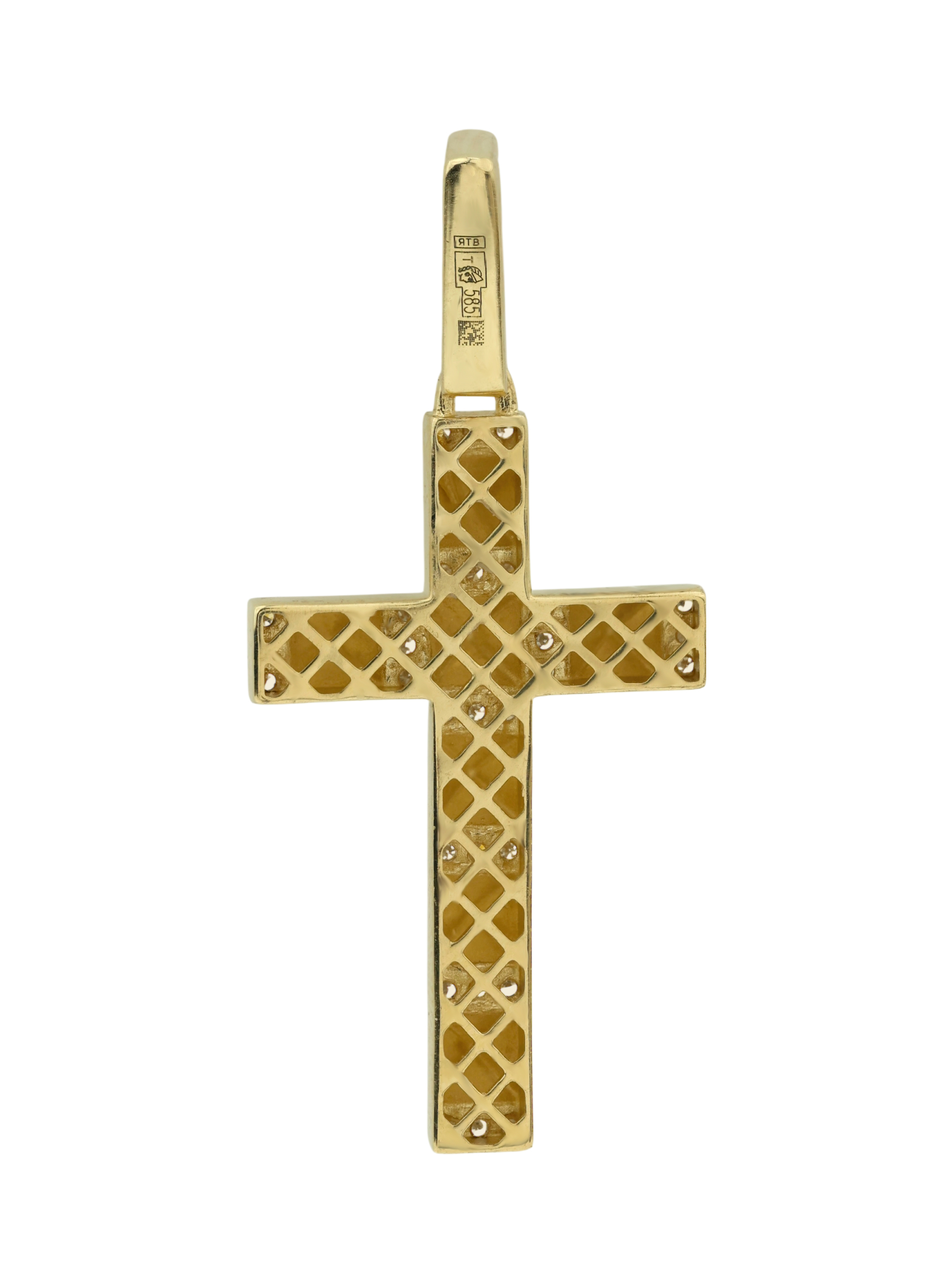 Крест из лимонного золота 585 пробы c бриллиантами