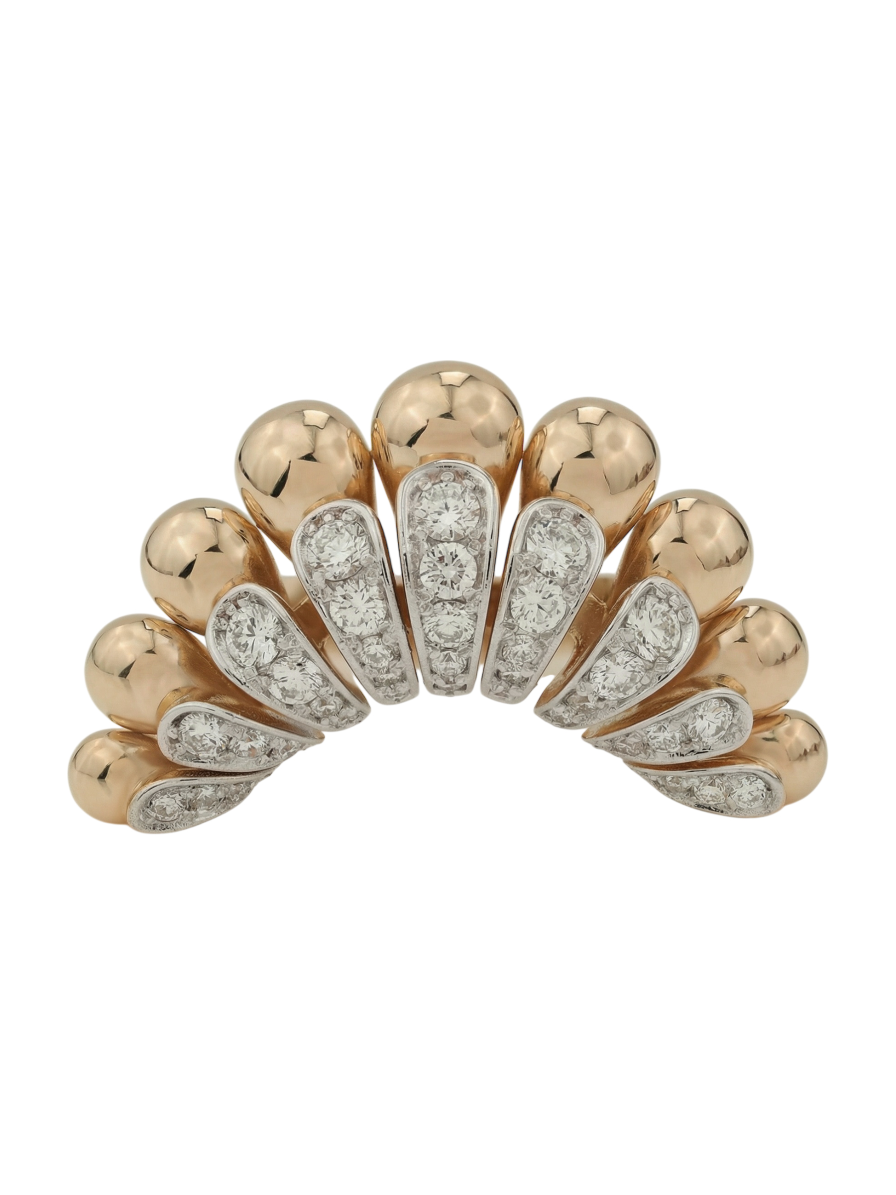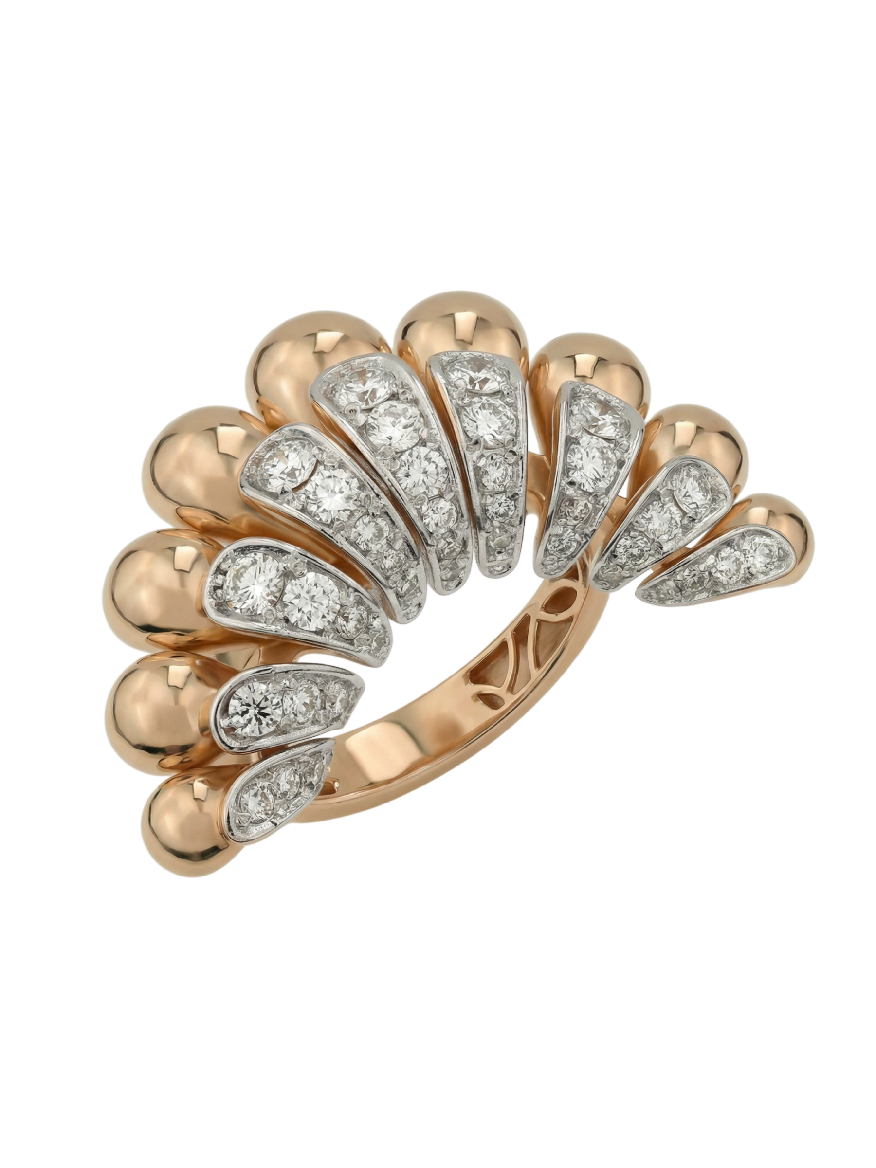 Эффектное кольцо из золота с бриллиантами — это воплощение итальянского стиля и безупречного ювелирного искусства. Модель выполнена из красного золота 585 пробы, которое подчеркивает теплоту и благородство металла. Уникальный дизайн, вдохновленный эстетикой коллекции Vioretty — Flamenco, сразу притягивает взгляд своей динамичной формой, напоминающей веер, где гладкие золотые элементы гармонично чередуются с яркими вставками.