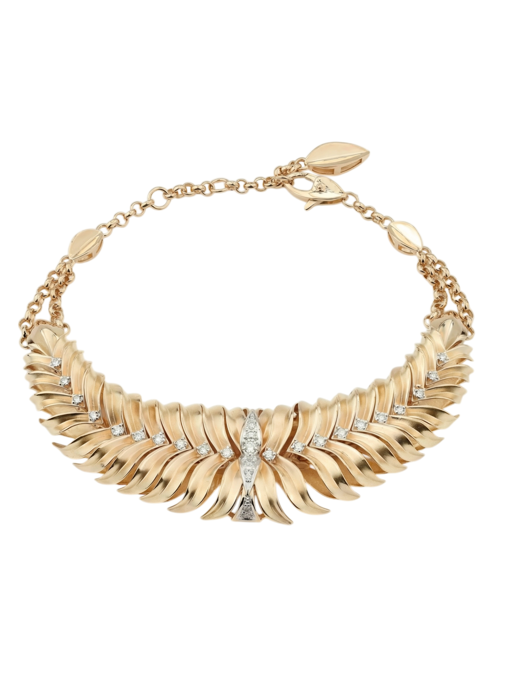 Такой браслет — это воплощение элегантности, которое прекрасно смотрится как самостоятельный аксессуар, так и в составе комплектов. Выбирая украшение из коллекции Vioretty — Palm Branch, вы отдаете предпочтение мастерству и эстетике. Ювелирное изделие гармонично дополнит вечерний или торжественный образ, подчеркивая индивидуальный вкус своего обладателя. Утонченное сочетание красного золота и сияющих бриллиантов превращает данный браслет в инвестицию в собственный стиль.