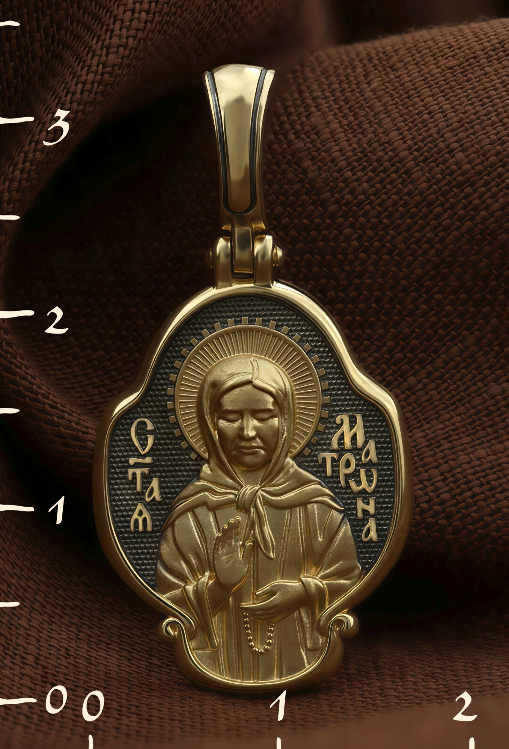 На обороте образка написана молитва: «О Блаженная мати Матроно, услыши насгрешных, молящихся к Тебе».