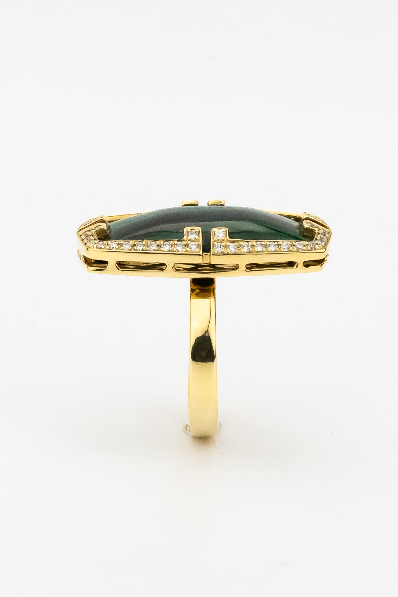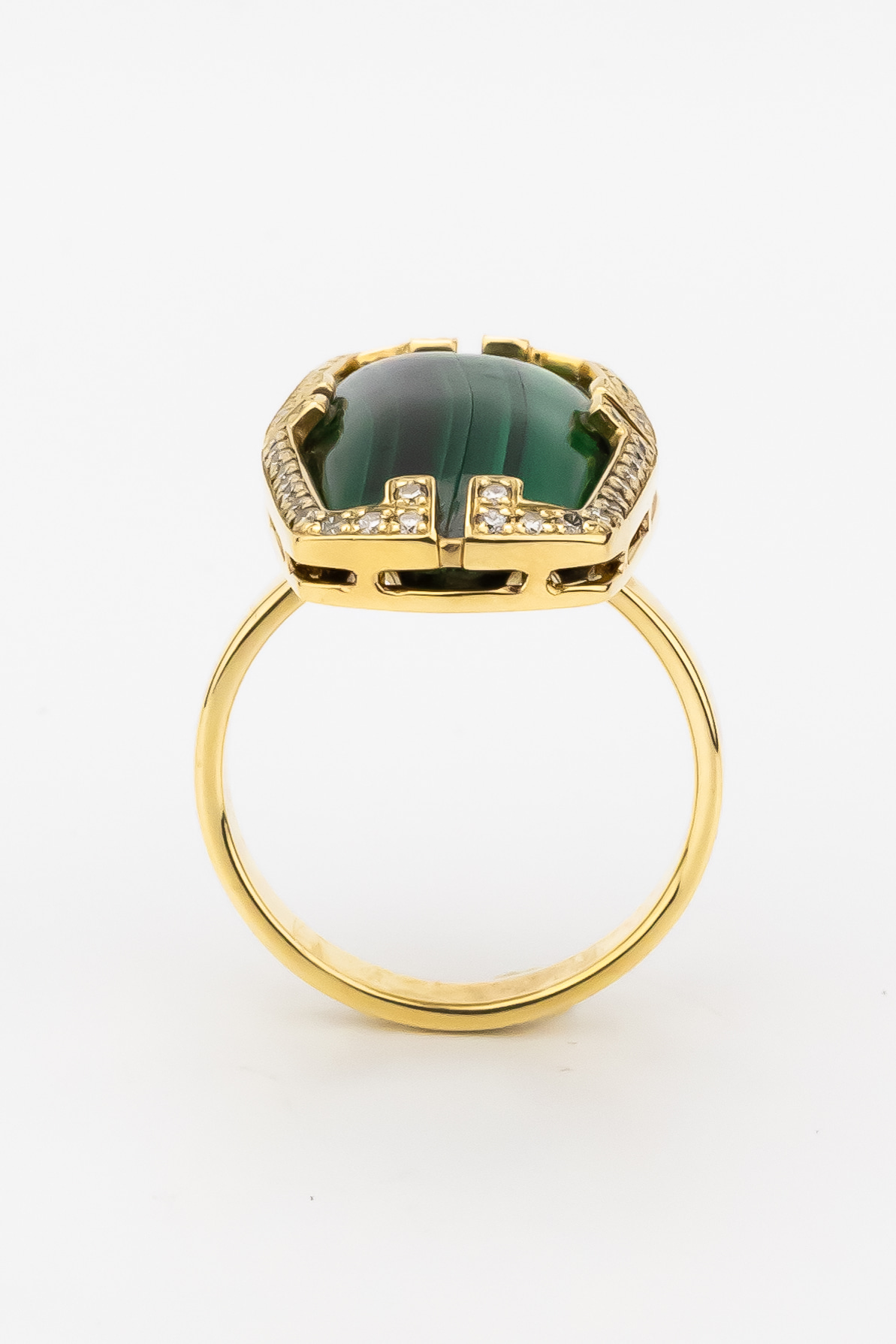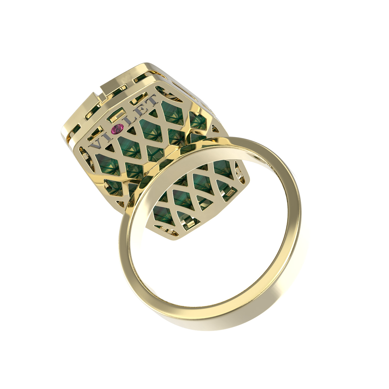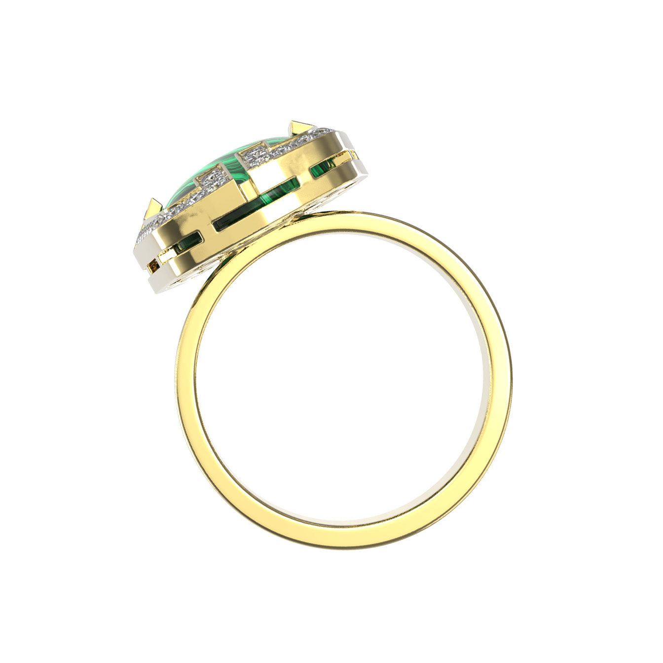 Кольцо из лимонного золота c бриллиантами, рубином и малахитом