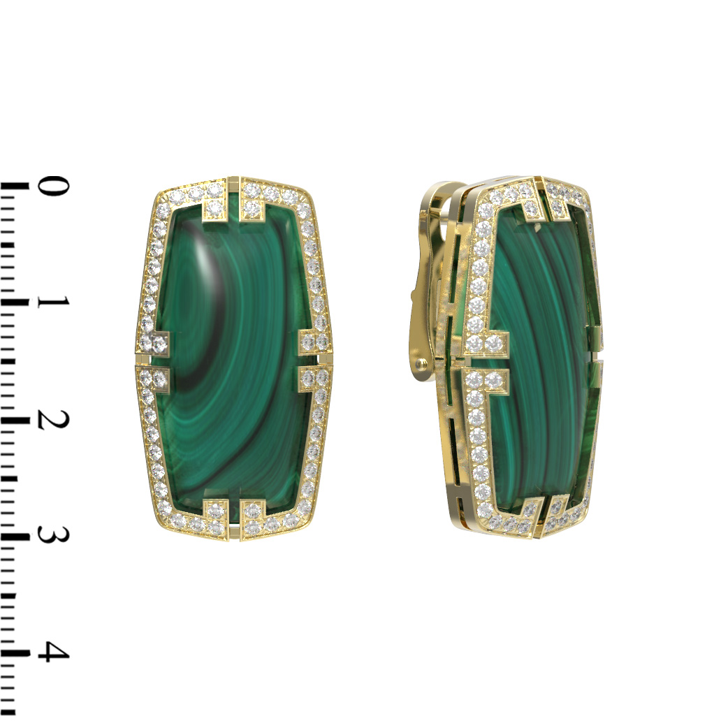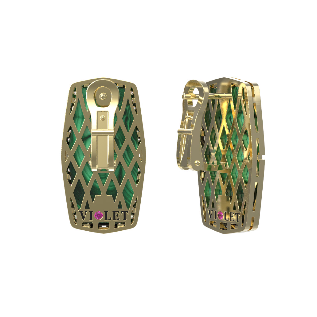 Серьги из лимонного золота c бриллиантами, рубином и малахитом