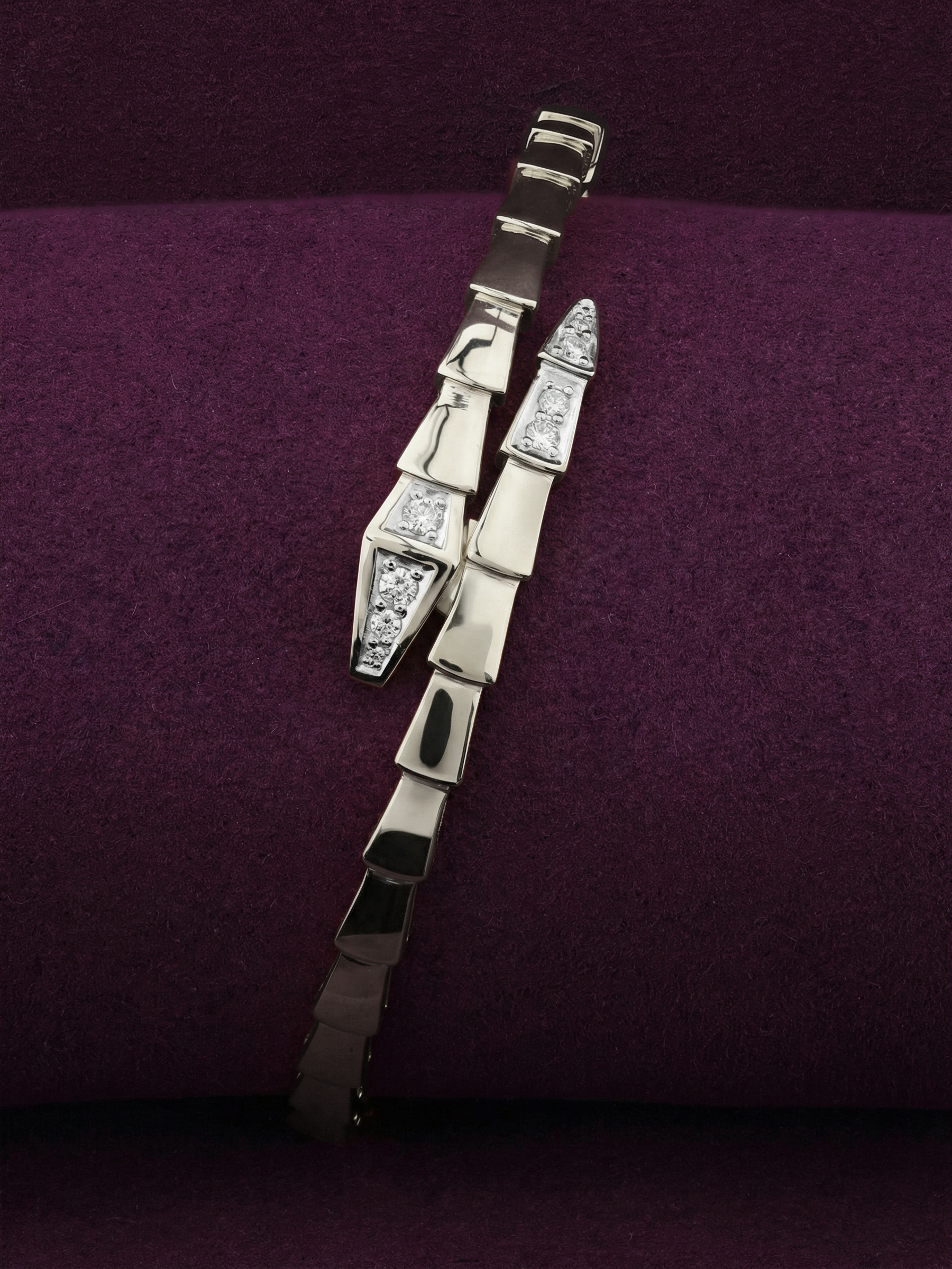 Универсальность дизайна позволяет носить браслет как женщинам, так и мужчинам, предпочитающим статусные аксессуары с характером. Изделие гармонично впишется в ваш повседневный гардероб или станет роскошным акцентом вечернего выхода. Вы можете дополнить свой образ, собрав полный комплект из серии De Luxe — Серпенти, чтобы подчеркнуть индивидуальность и чувство стиля. Это ювелирное украшение — идеальный выбор для тех, кто ценит сочетание классического белого золота и выразительной современной эстетики.
