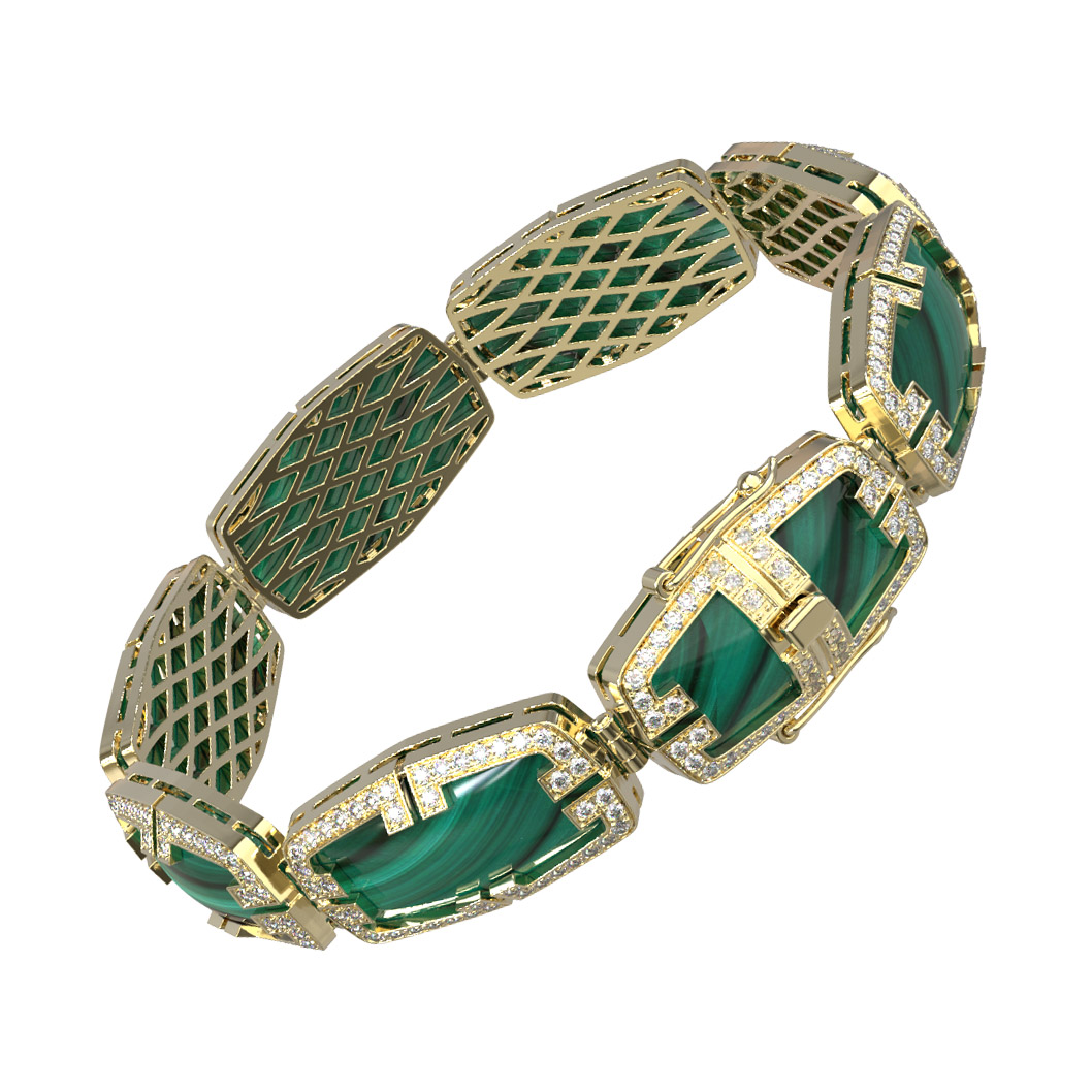 Браслет из лимонного золота c бриллиантами, рубином и малахитом