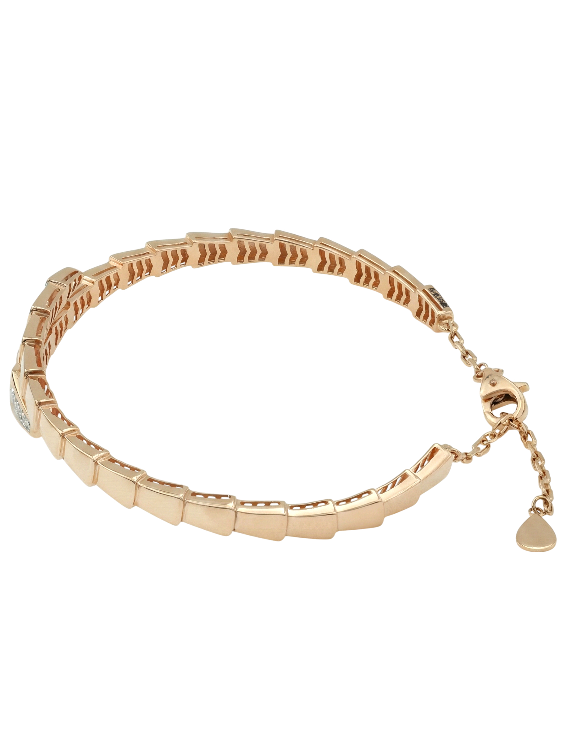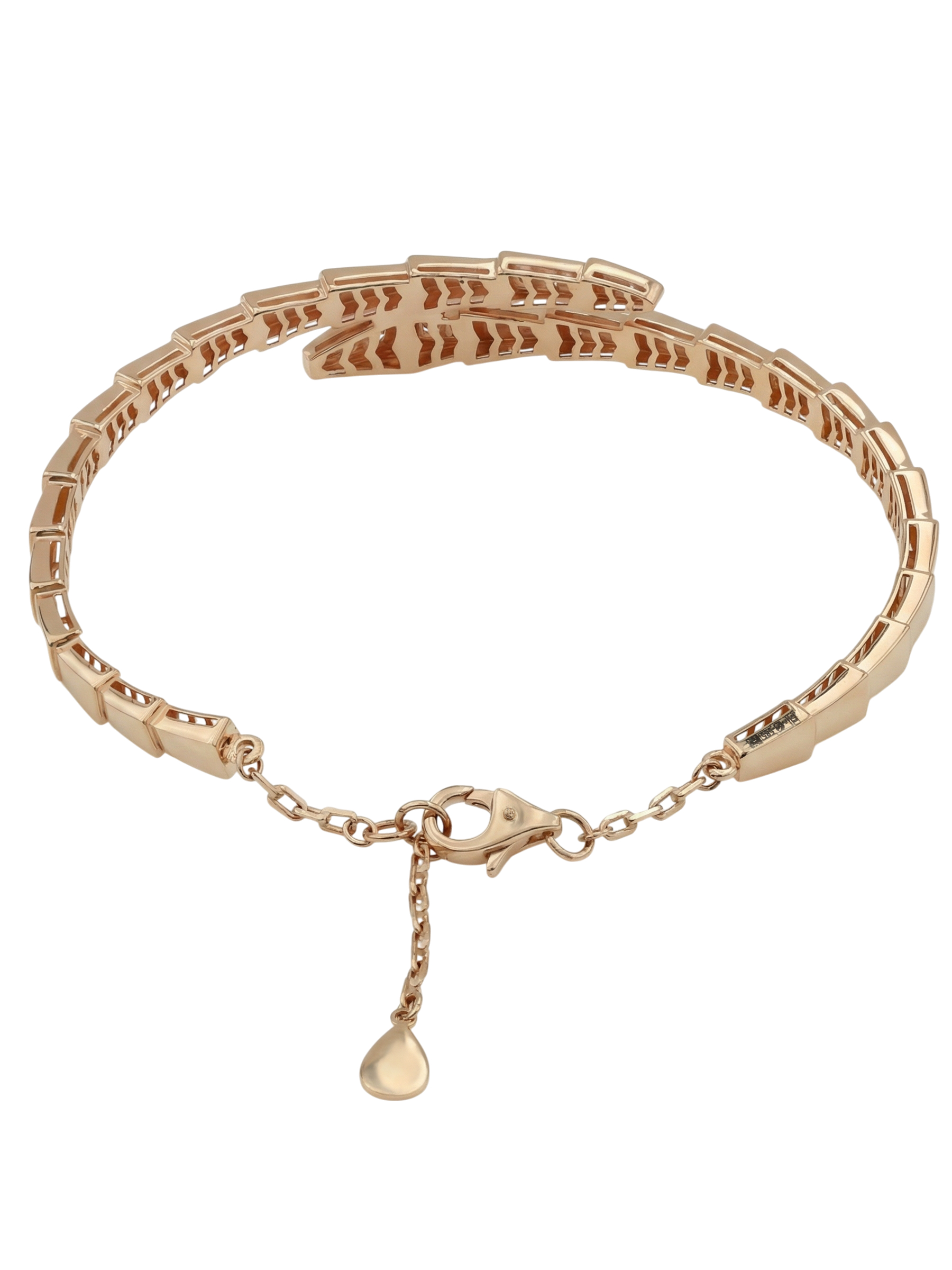Роскошный браслет из красного золота 585 пробы станет ярким акцентом вашего образа. Это ювелирное изделие из коллекции De Luxe — Серпенти выполнено в оригинальном дизайне, напоминающем очертания скорпиона или грациозного змеиного силуэта, который плавно охватывает запястье. Гладкие линии металла создают динамичную композицию, подчеркивающую статус и безупречный вкус владельца.