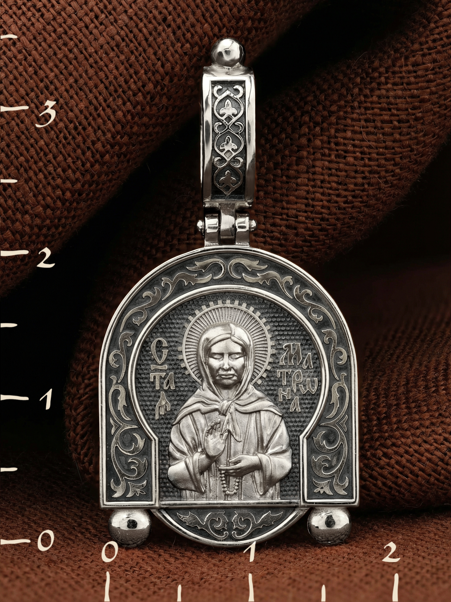 На лицевой стороне образка изображена Святая Матрона Московская.