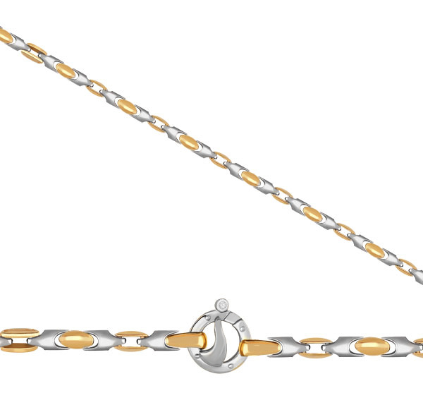 Элегантная цепь для мужчин из коллекции De Luxe — Цепи De Luxe воплощает собой статус и безупречный стиль. Это украшение выполнено из благородного белого золота 585 пробы, которое привлекает своим холодным сиянием и подчеркивает мужественность образа. Комбинированный дизайн изделия, сочетающий элементы белого золота и теплого оттенка металла, придает цепочке уникальный и выразительный вид.