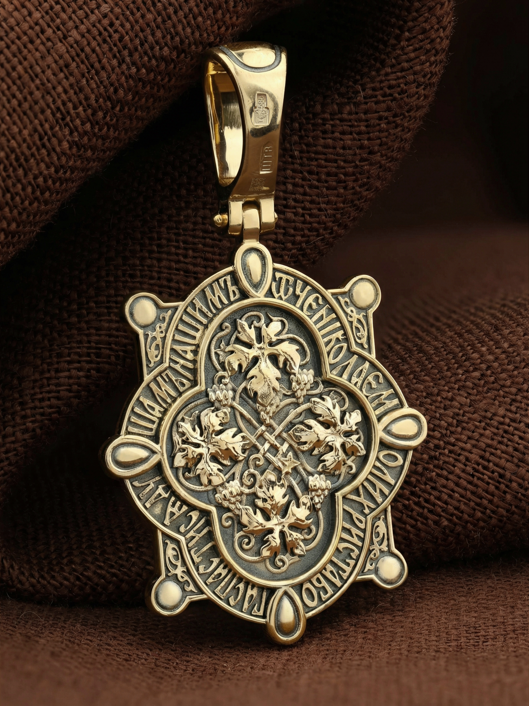 По контуру оборотной стороны образка написаны слова молитвы: «Отче Николае, моли Христа Бога спастися душам нашим». В центре образка изображен орнамент, свитый из виноградной лозы. «Я есмь истинная виноградная лоза, а Отец Мой — виноградарь» (Ин. 15:1). Так назвал себя Иисус Христос, Глава насажденной Им же Церкви, единственный источник и проводник духовной, святой жизни для всех православно-верующих, которые суть члены тела Его. «Я есмь лоза, а вы ветви; кто пребывает во Мне, и Я в нем, тот приносит много плода» (Ин. 15:5). Виноградная лоза для христиан находится в символической связи с Таинством Евхаристии. Причащаясь Крови и Тела Христовых, мы становимся причастниками и души Его, пьем живо-творящие соки Истинной Виноградной Лозы. Это таинство было установлено Иисусом Христом во время Тайной Вечери накануне Его Крестных страданий.