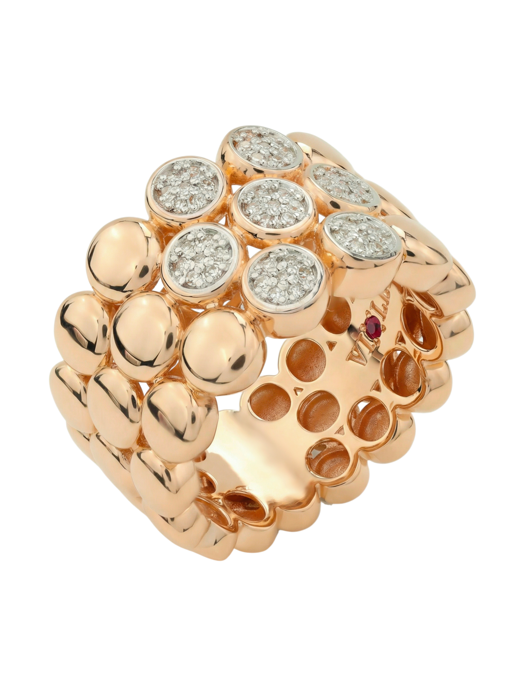 Кольцо из красного золота 585 пробы — это воплощение изысканного итальянского стиля, представленное в коллекции Vioretty — Toscana. Данное украшение станет выразительным акцентом вашего образа, подчеркивая утонченный вкус владельца. Ювелиры уделили особое внимание деталям, создав массивное изделие с уникальной фактурой, напоминающей россыпь драгоценных камней, идеально подходящее как для женщин, так и для мужчин, которые ценят статус и оригинальность.
