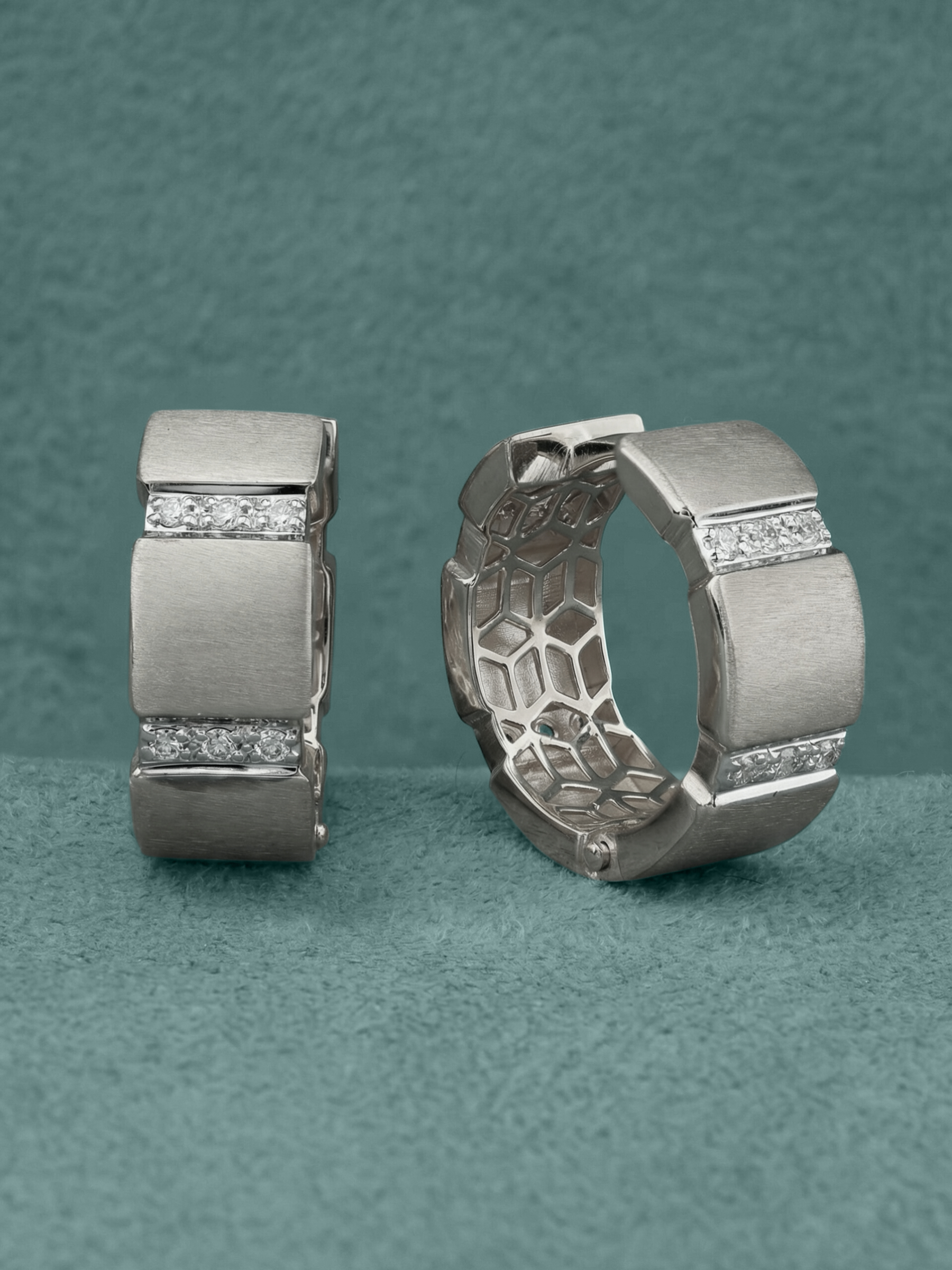 Эти универсальные серьги одинаково гармонично дополнят стиль как женщин, так и мужчин, предпочитающих лаконичные, но заметные аксессуары. Данная модель может стать самостоятельным акцентом образа или частью комплекта, подчеркивая индивидуальность владельца. Белое золото в сочетании с бриллиантами — классическое решение для тех, кто ценит долговечность, высокое качество исполнения и сдержанную роскошь.
