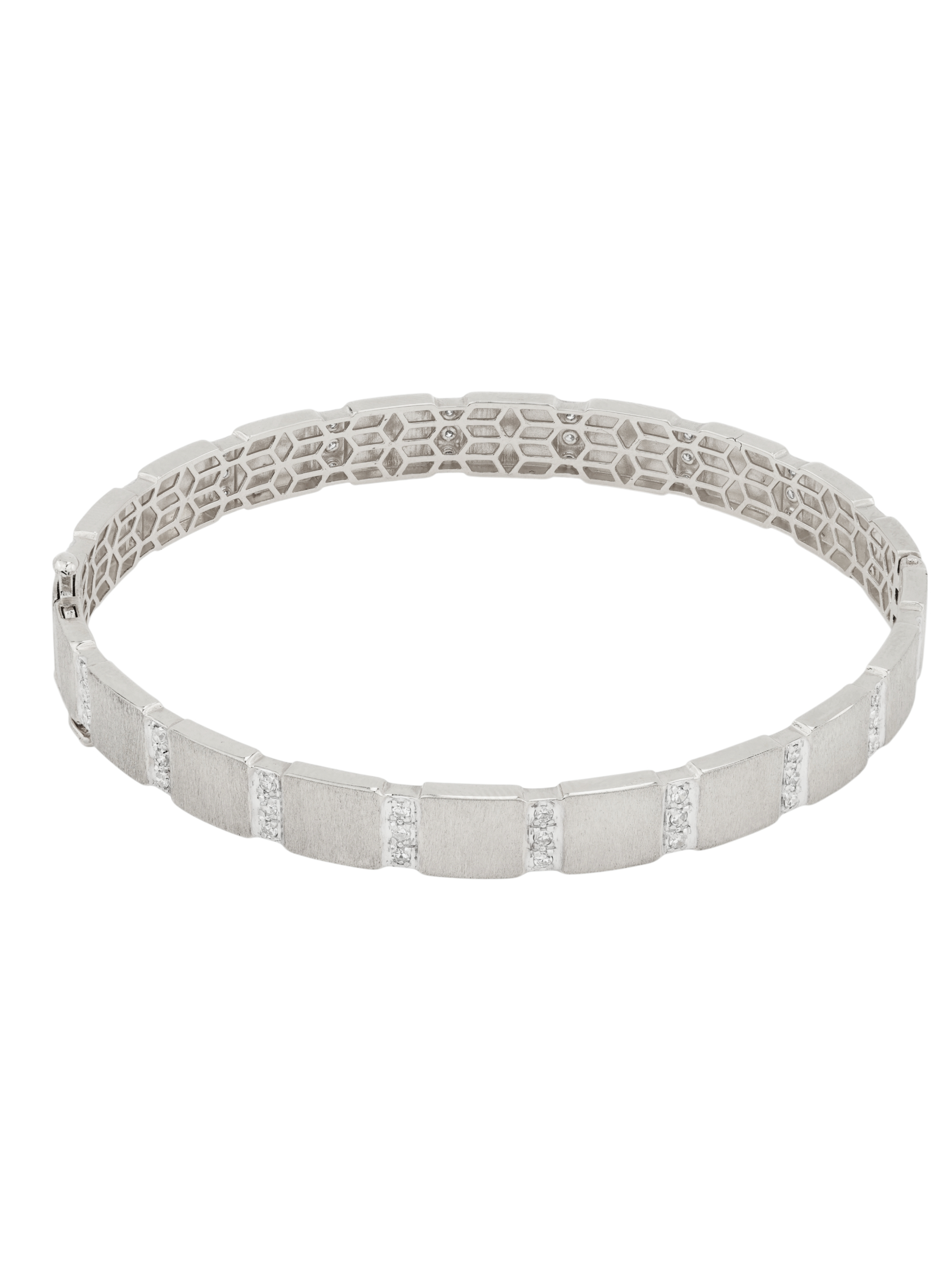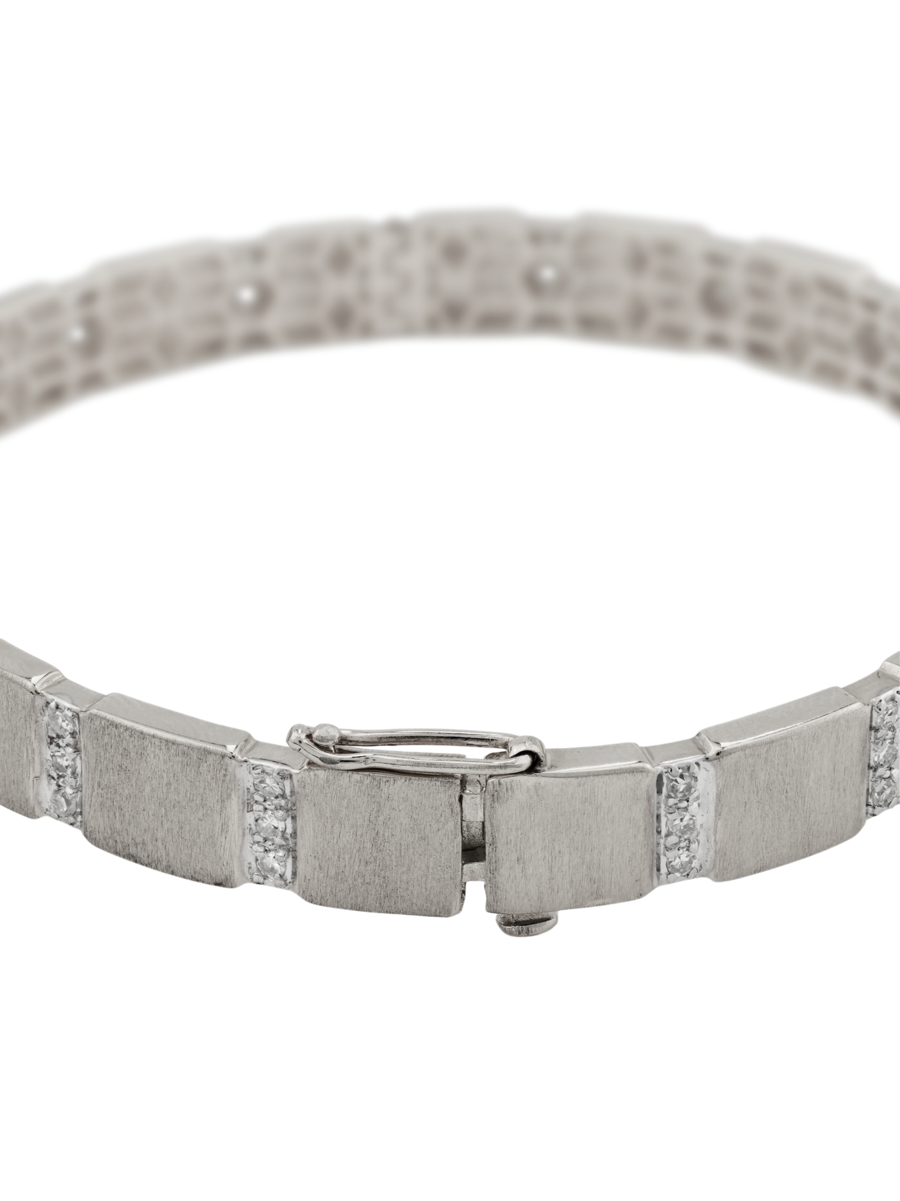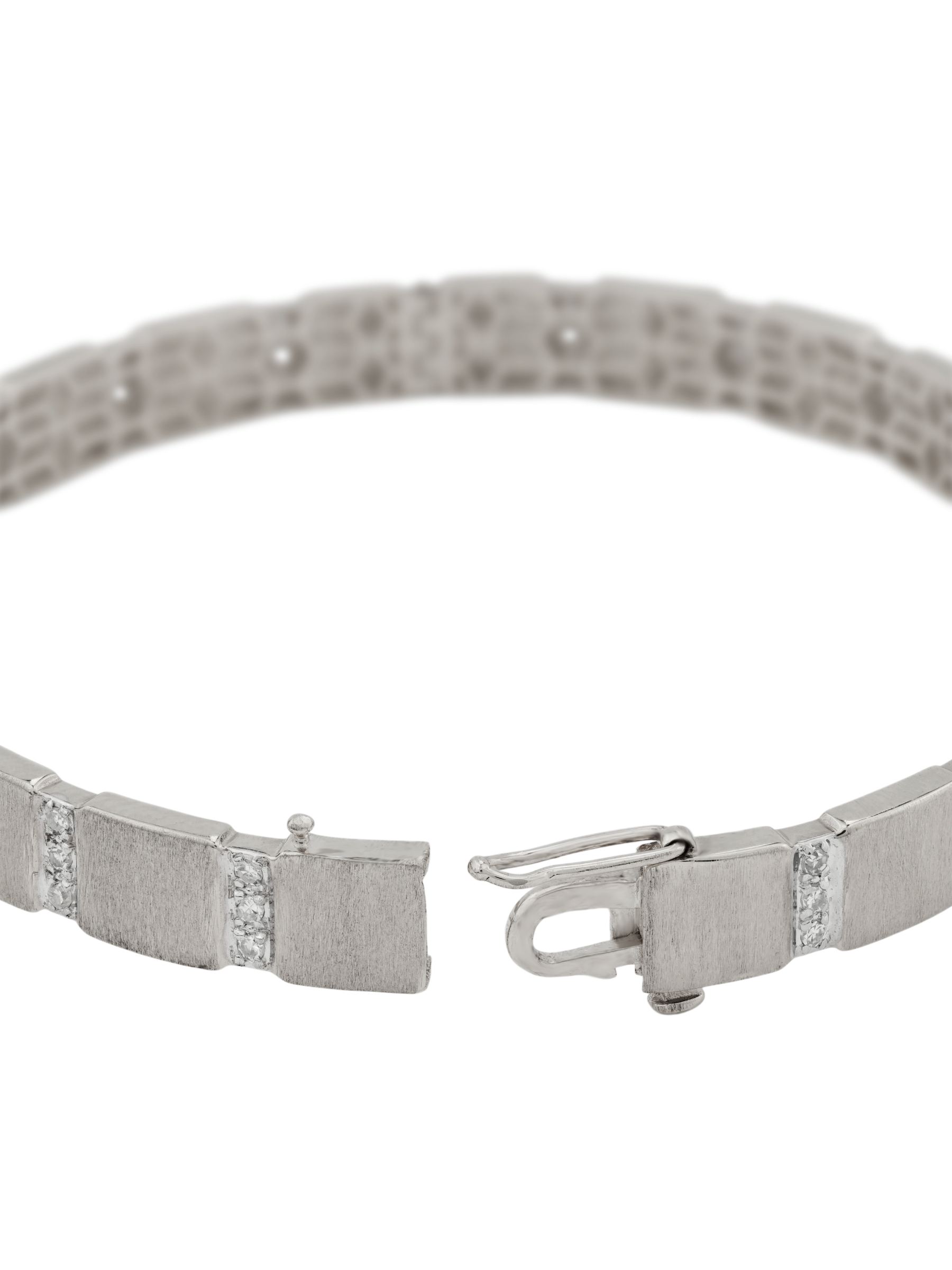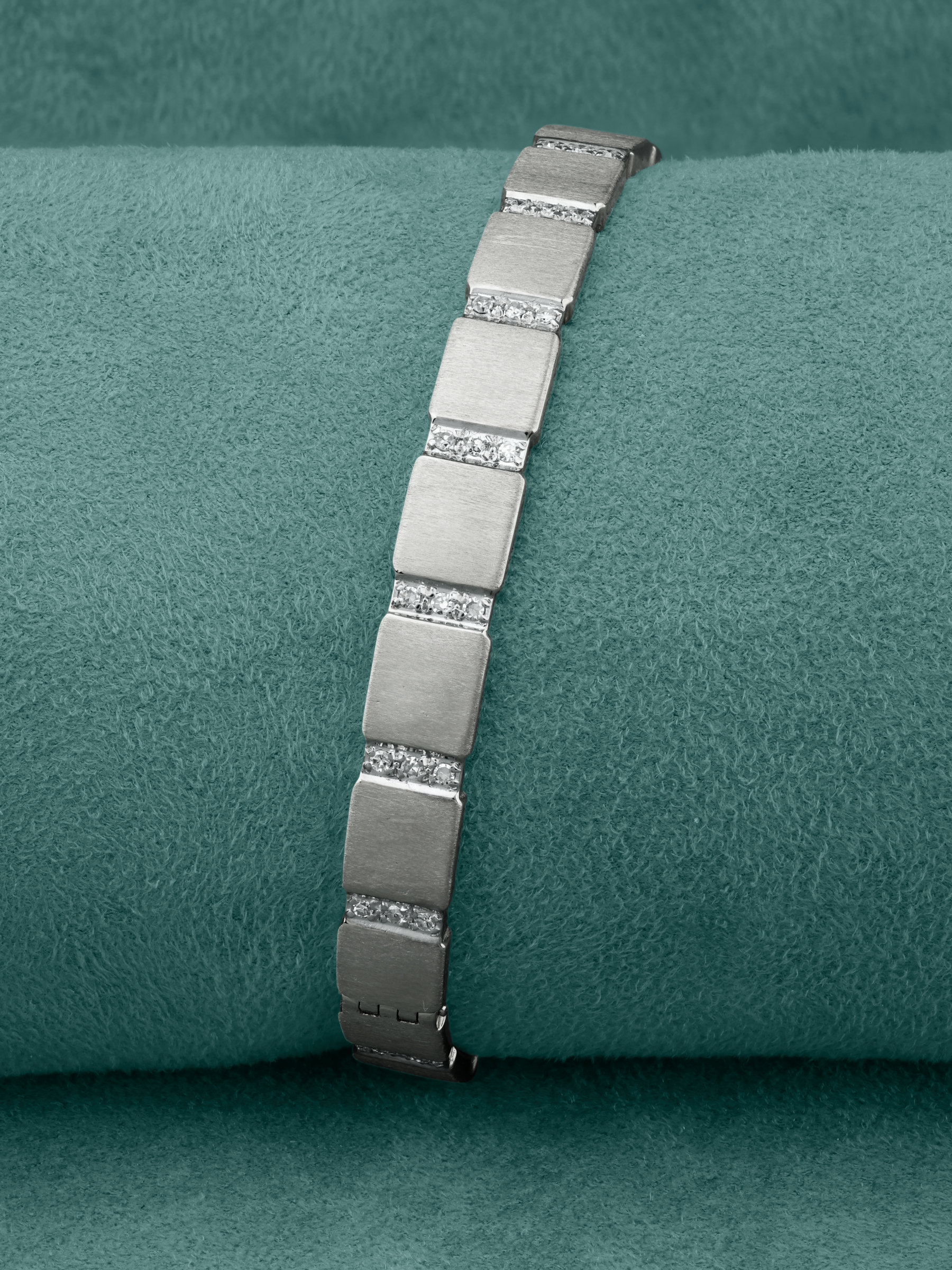 Центральным элементом композиции выступает инкрустация: 54 безупречных бриллианта круглой формы с белым цветом вставок создают завораживающую игру света при каждом движении. Браслет обладает универсальным дизайном, который подойдет как для женщин, так и для мужчин, подчеркивая индивидуальность и статус своего владельца. Размер 17 обеспечивает комфортную посадку на запястье, позволяя изделию выглядеть элегантно и естественно.