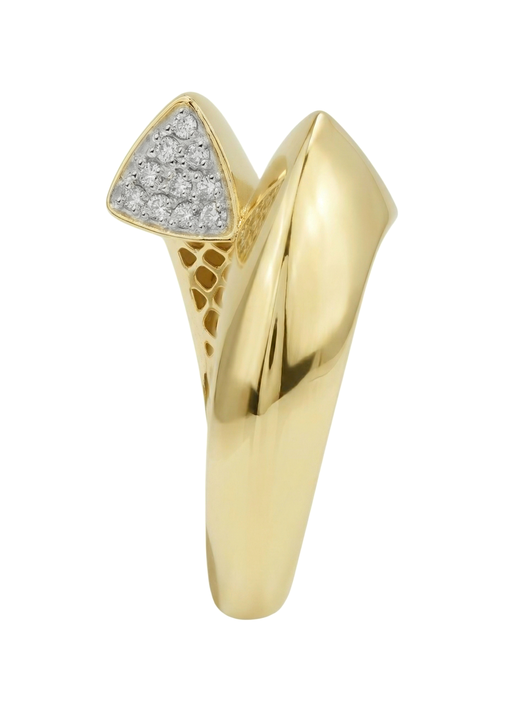 Изысканное кольцо из лимонного золота 585 пробы станет ярким акцентом вашего образа, подчеркивая безупречный вкус. Ювелирное изделие выполнено в утонченном итальянском стиле, где классическая роскошь встречается с современной геометрией. Центральный элемент украшения привлекает внимание своей необычной формой, инкрустированной двадцатью бриллиантами круглой огранки. Белые вставки эффектно контрастируют с насыщенным оттенком лимонного золота, создавая гармоничную композицию.